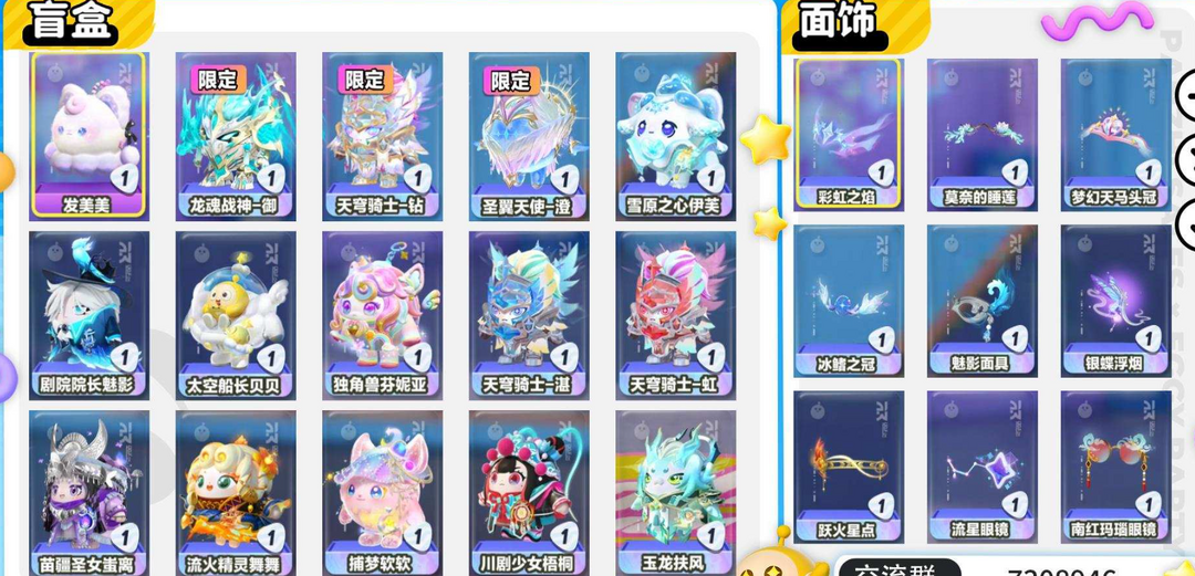 安卓官服 17W潮流值 22至臻角色盲盒 110典藏盲盒角色 云梦兜兜龙 大骑士染色 大天使染色 月白之隐 碎晶幻翼 闪闪星蝶翅膀 龙神翼 冰晶耀盾 裁决圣环 至臻角色:龙魂战神-御(限定) 天穹骑士-钻(染色限定) 圣翼天使-澄(染色限定) 醒狮蛋宝 独角兽芬妮亚 彼岸红皇后(隐藏至臻) 苗疆圣女蚩离 玉龙扶风 天穹骑士-虹 天穹骑士-湛 圣翼天使-恋 圣翼天使-堕 雪原之心伊芙 太空船长贝贝 川剧少女梧桐 剧院院长魅影 流火精灵舞舞 蔷薇白皇后 捕梦软软 ◆◆◆◆◆◆◆◆◆◆◆限定配饰:月白之隐 碎晶幻翼 闪闪星蝶翅膀 冰晶耀盾 裁决圣环 彩虹之焰 神圣天平 天使圣冠 圣晶竖琴 稀有盲盒角色:北极狐卢比(隐藏) 歌院首席露希(隐藏) 灵灯闪闪(隐藏) 萤火偷偷(隐藏) 小羊 奥特曼 飞天小猪班尼 等等各种
