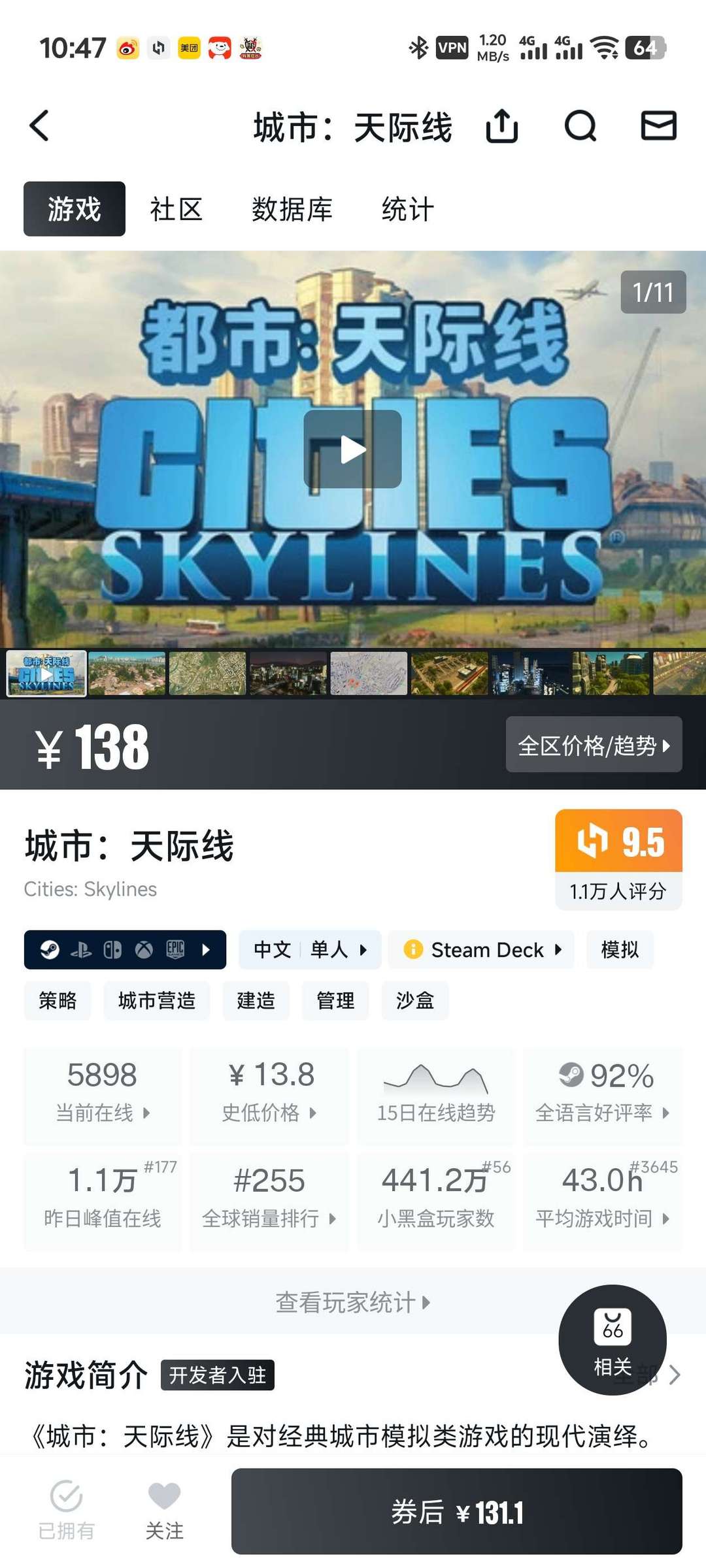 城市天际线里有个 40 万的存档