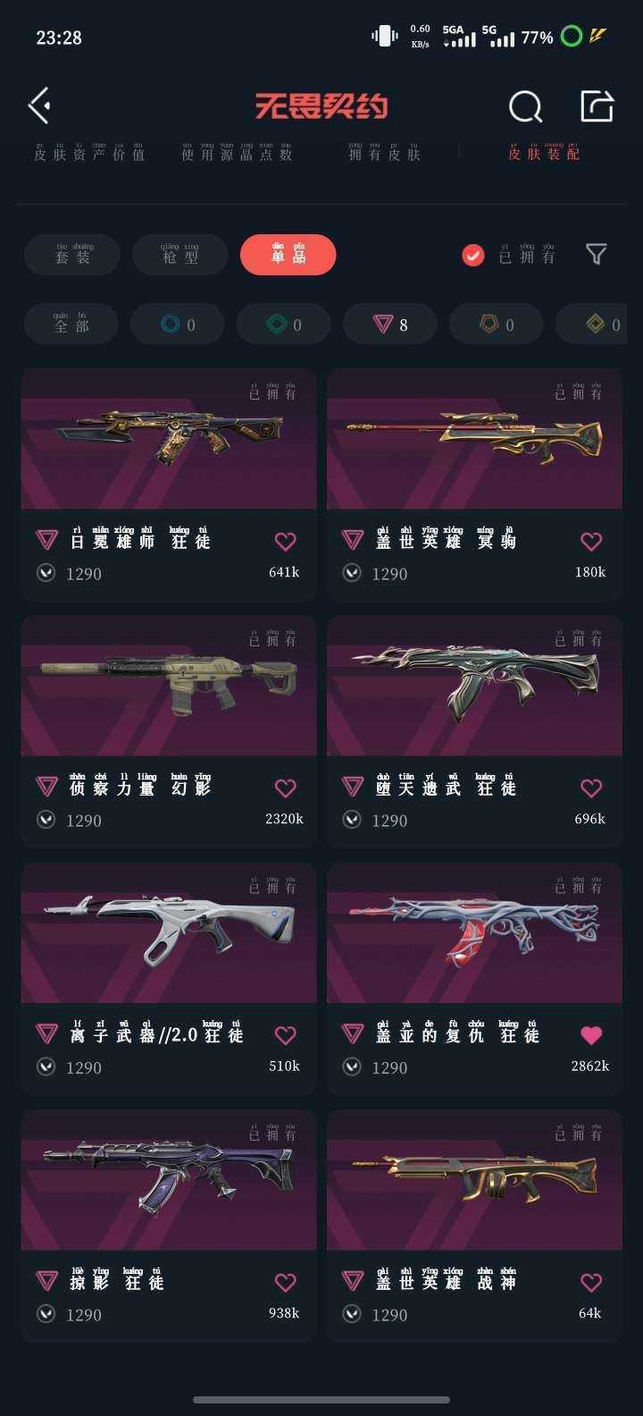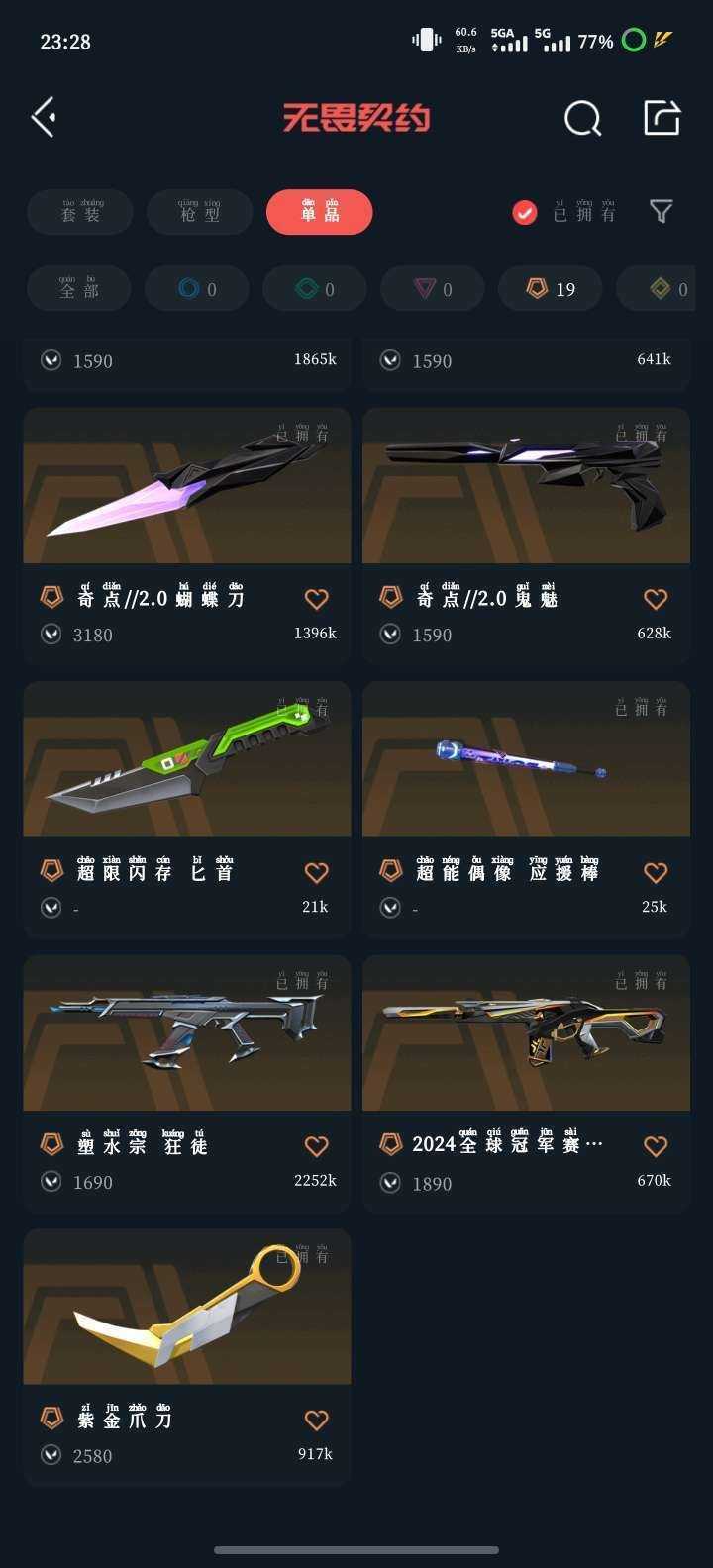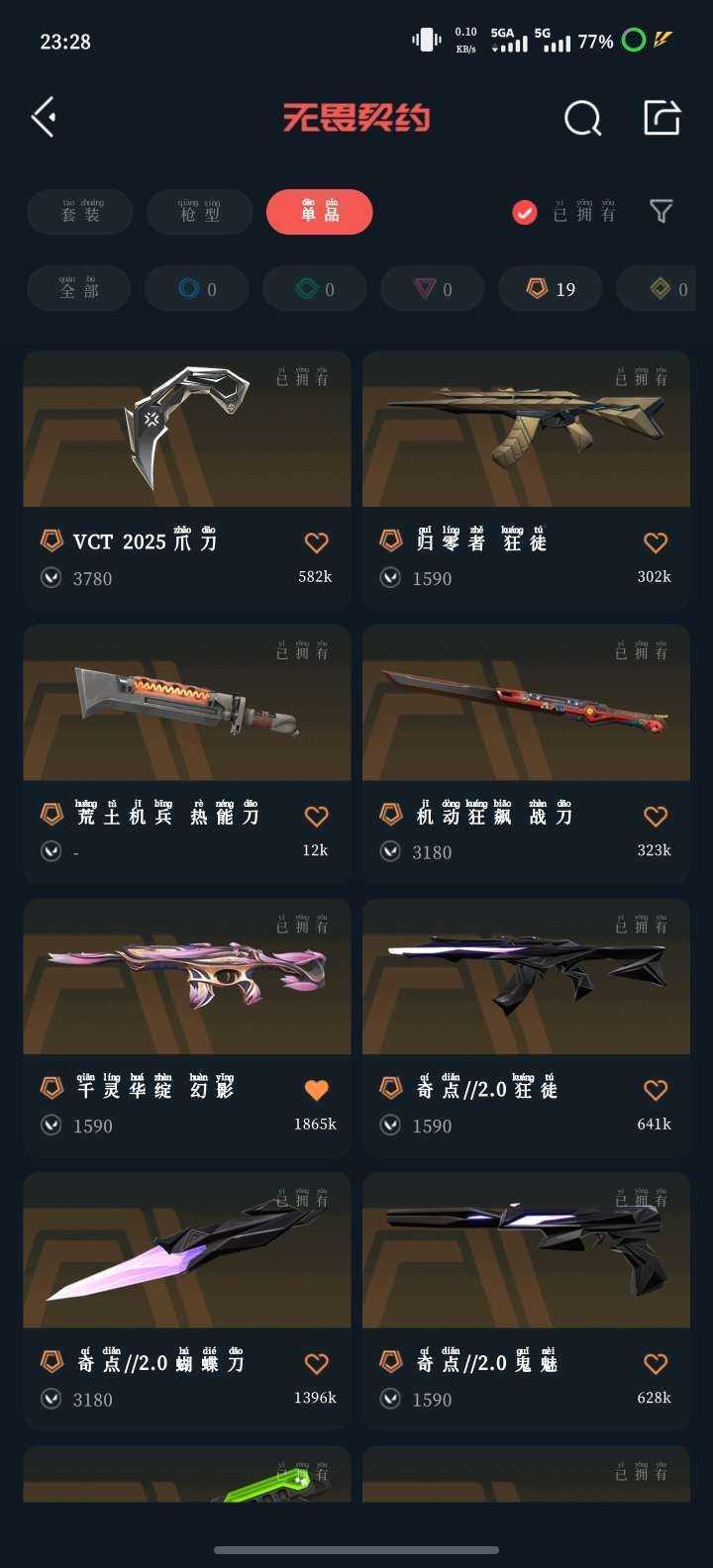 可排位+VCT爪刀+奇点2.0套+机动战刀+归零狂徒+离子狂徒+侦查幻影+日冕狂徒