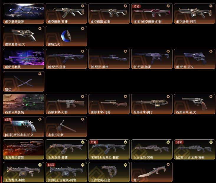 可排位大库存☆25爪刀☆混沌序曲☆RGX☆塑水宗☆西部☆上古炎龙☆西部☆盖亚☆虚空☆艾沃莉☆各种散件