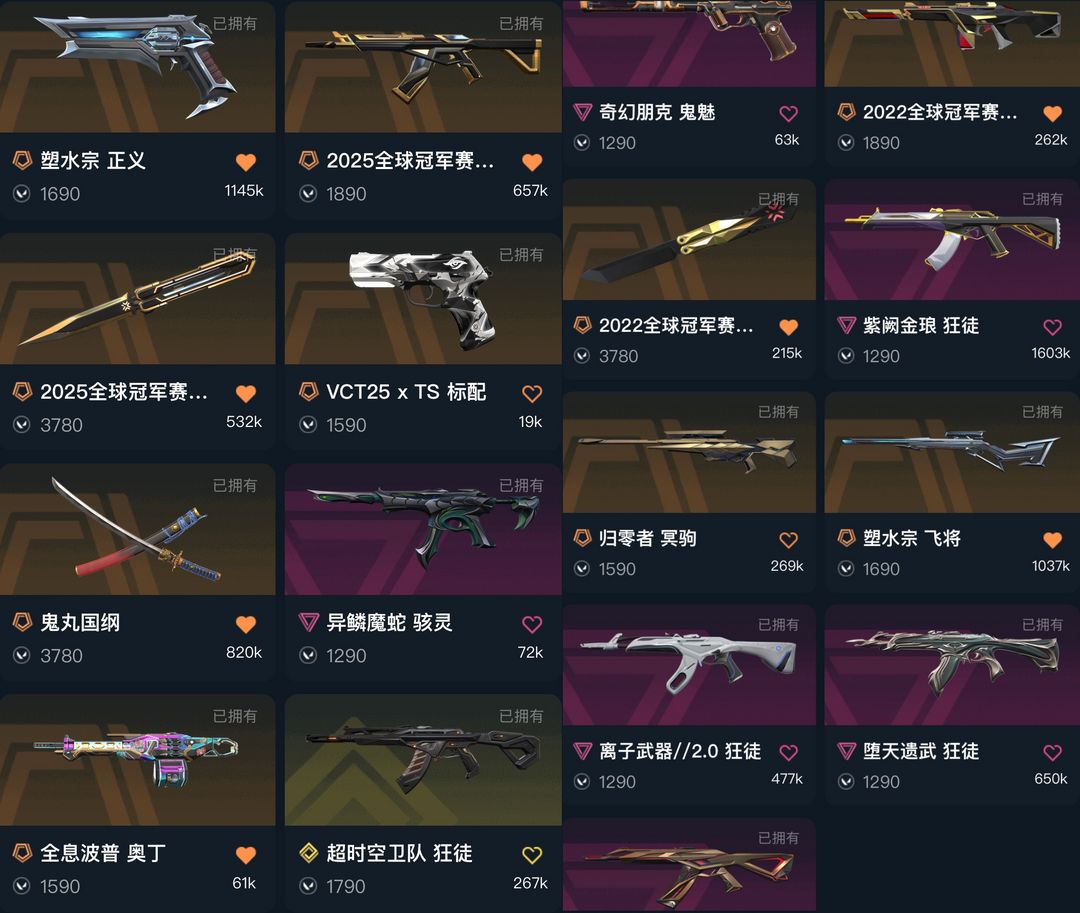可排✅精品库存⭐25冠军套超时空卫队紫金离子2弃王威龙⭐蝴蝶刀太刀⭐22冠军⭐塑水宗朋克归零者vct