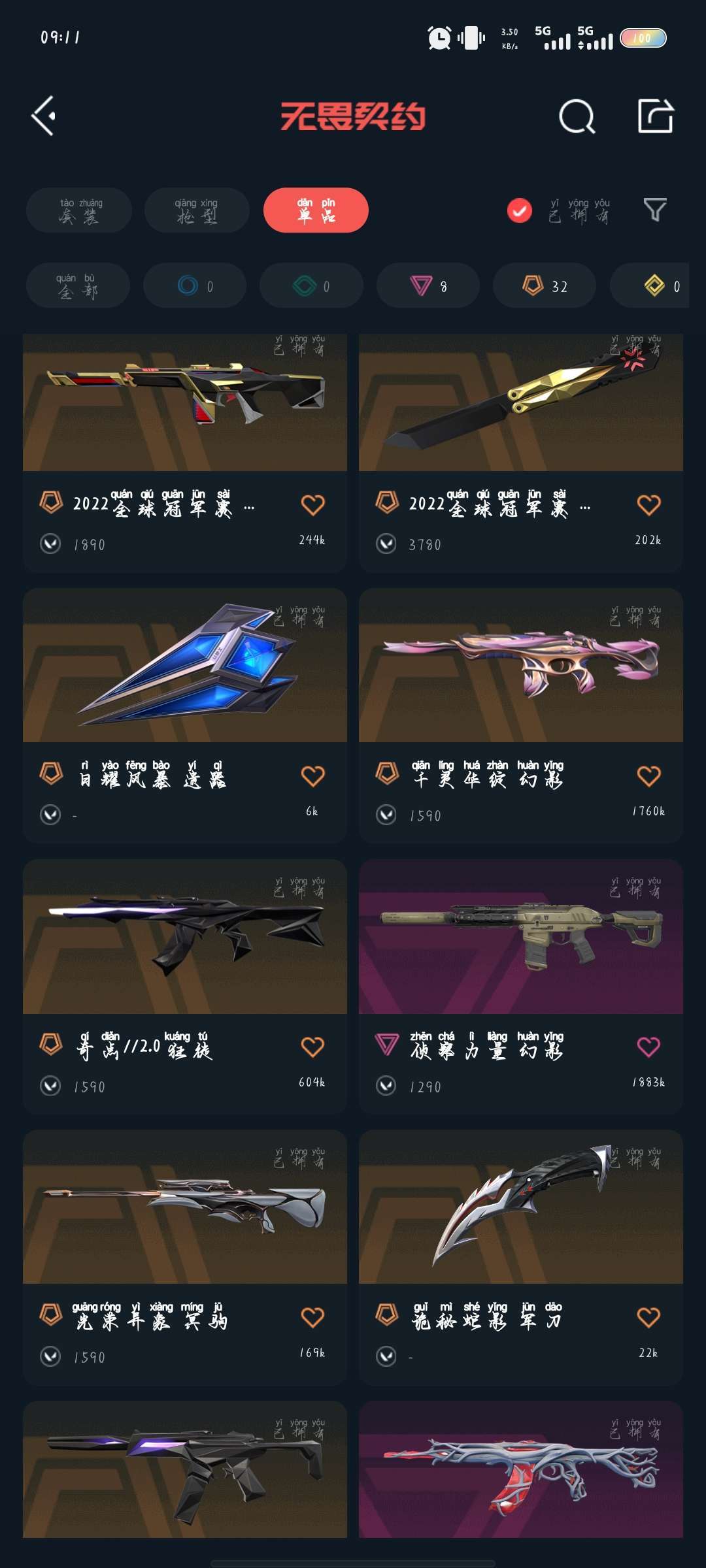 武器皮肤数量:106