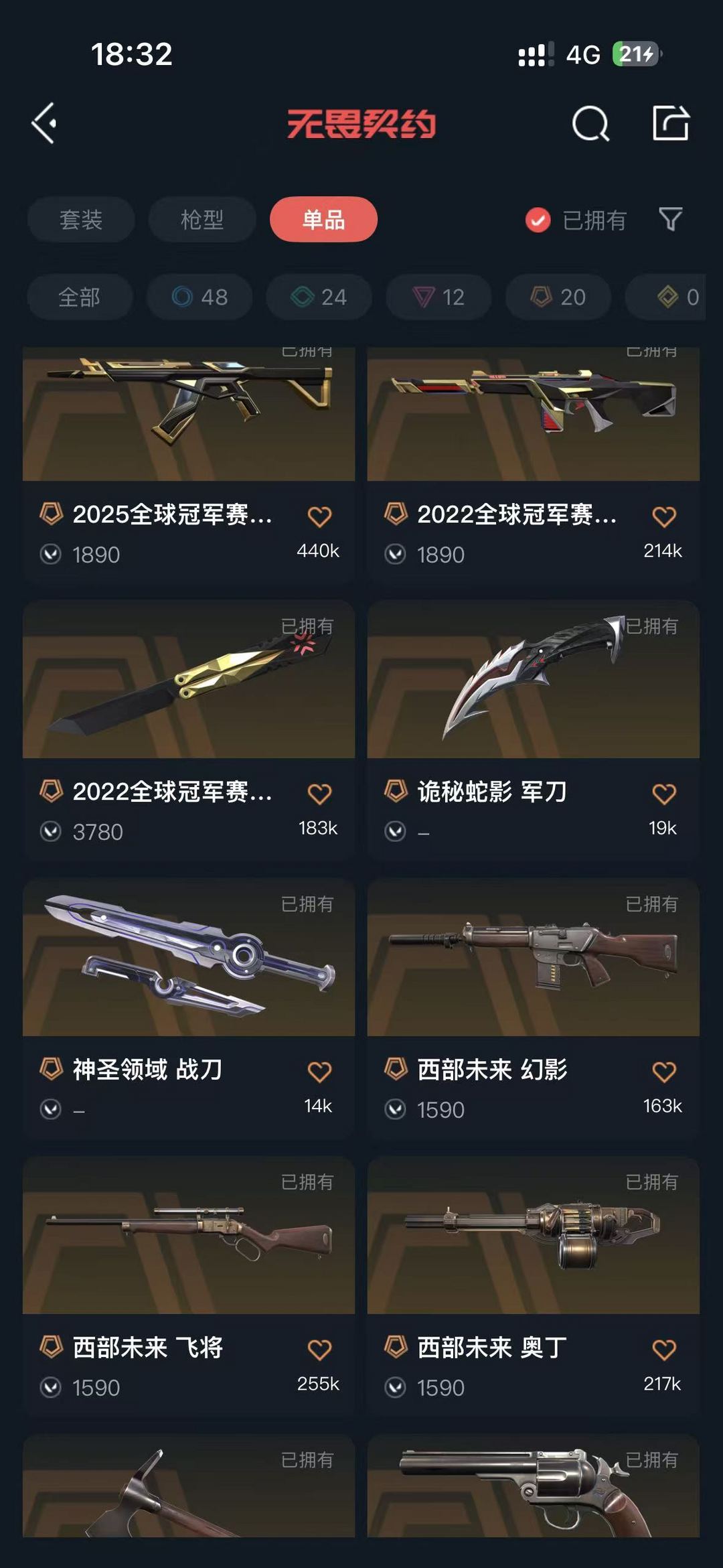 可排✅8万极品库存✅25冠军ak✅22冠军套装✅24冠军套装掠影套装✅威龙刀✅苍龙混沌塑水紫金堕天a