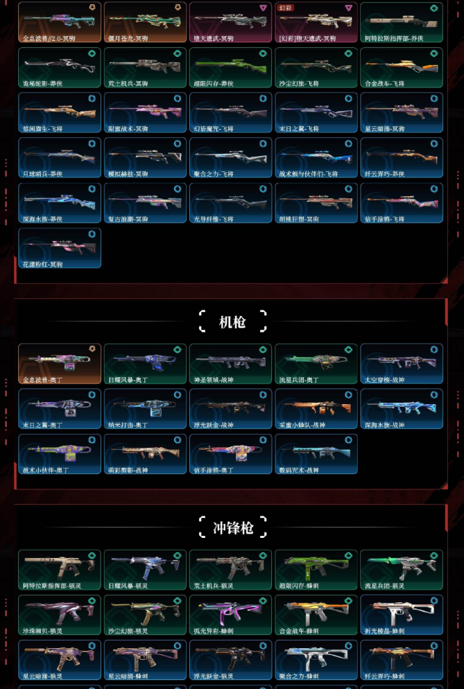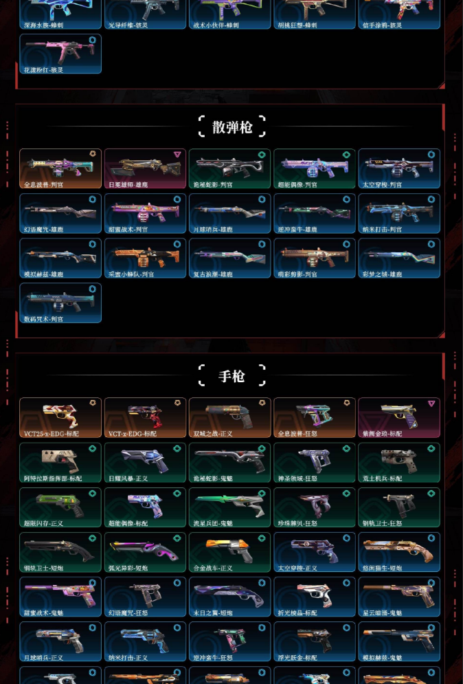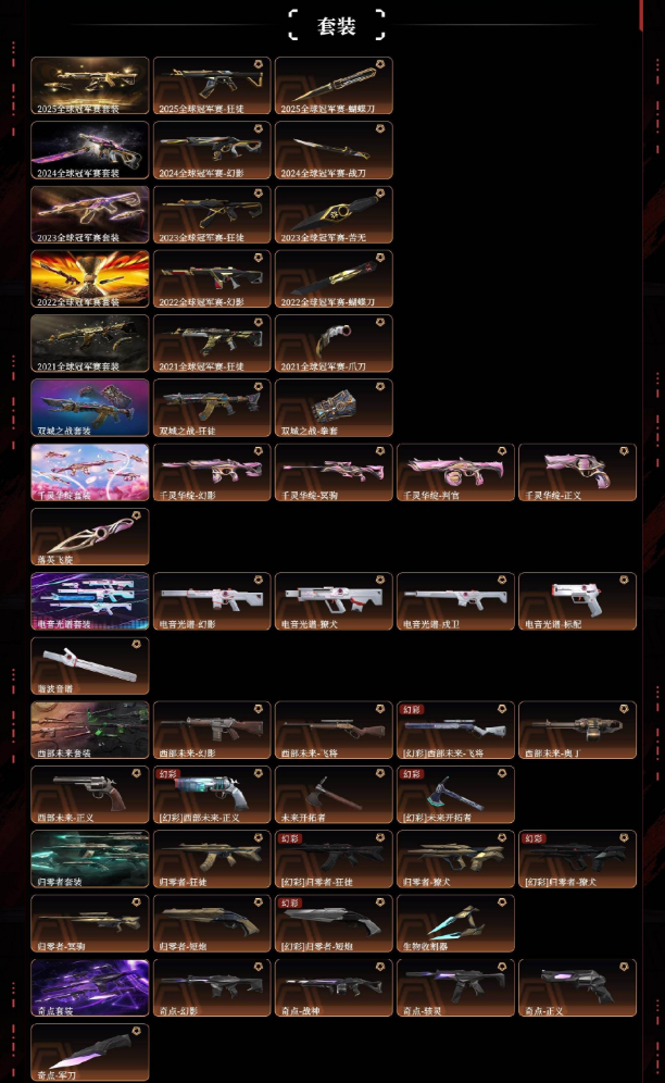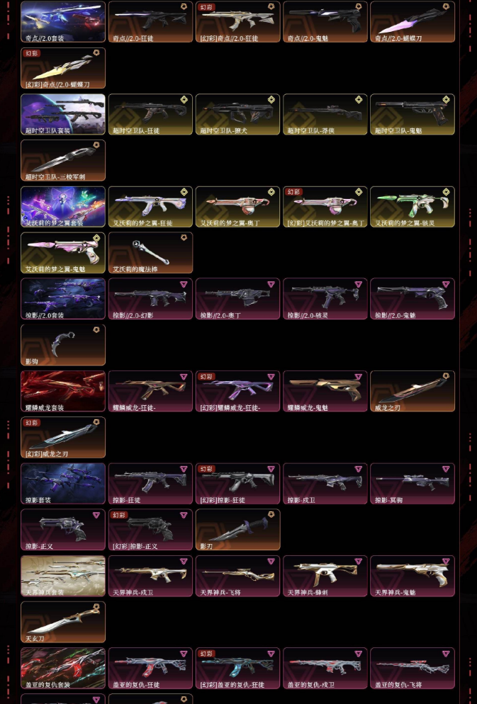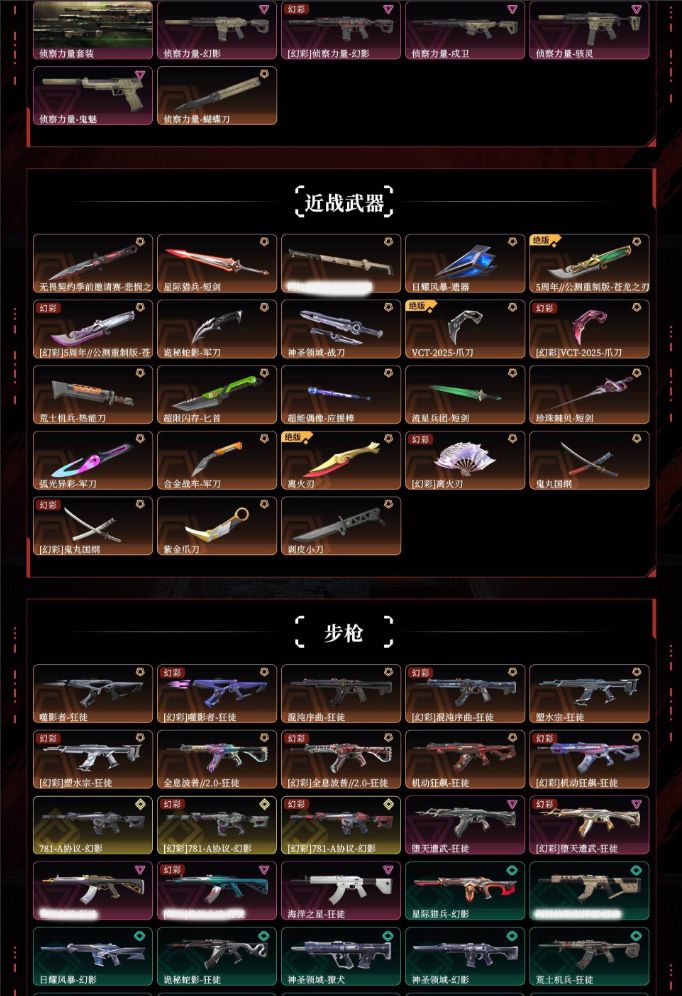 悲悯之刃满限定掠影2.0超时空卫队千灵华绽电音光谱西部未来归零者奇点奇点2.0艾莉沃的梦之翼耀鳞威龙库恶意天界神兵盖亚的复仇侦察力量苍龙之刃离火刃vct爪刀超限闪存匕首弧光异彩剥皮小刀噬影者狂徒混沌序曲狂徒塑水宗狂徒全息波普2.0狂徒机动狂飙狂徒协议幻影堕天遗武狂徒紫阙金琅狂徒海洋之星狂徒全息波普2.0冥驹偃月苍龙冥驹堕天遗武冥驹全息波普奥丁全息波普判官日冕雄狮雄鹿vctedg标配双城之战正义全息波普狂怒紫阙金琅标配