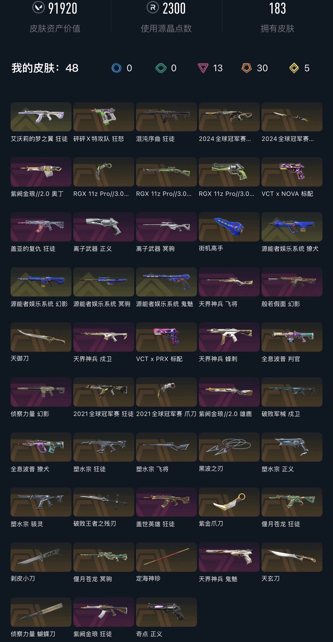 武器皮肤数量:185
