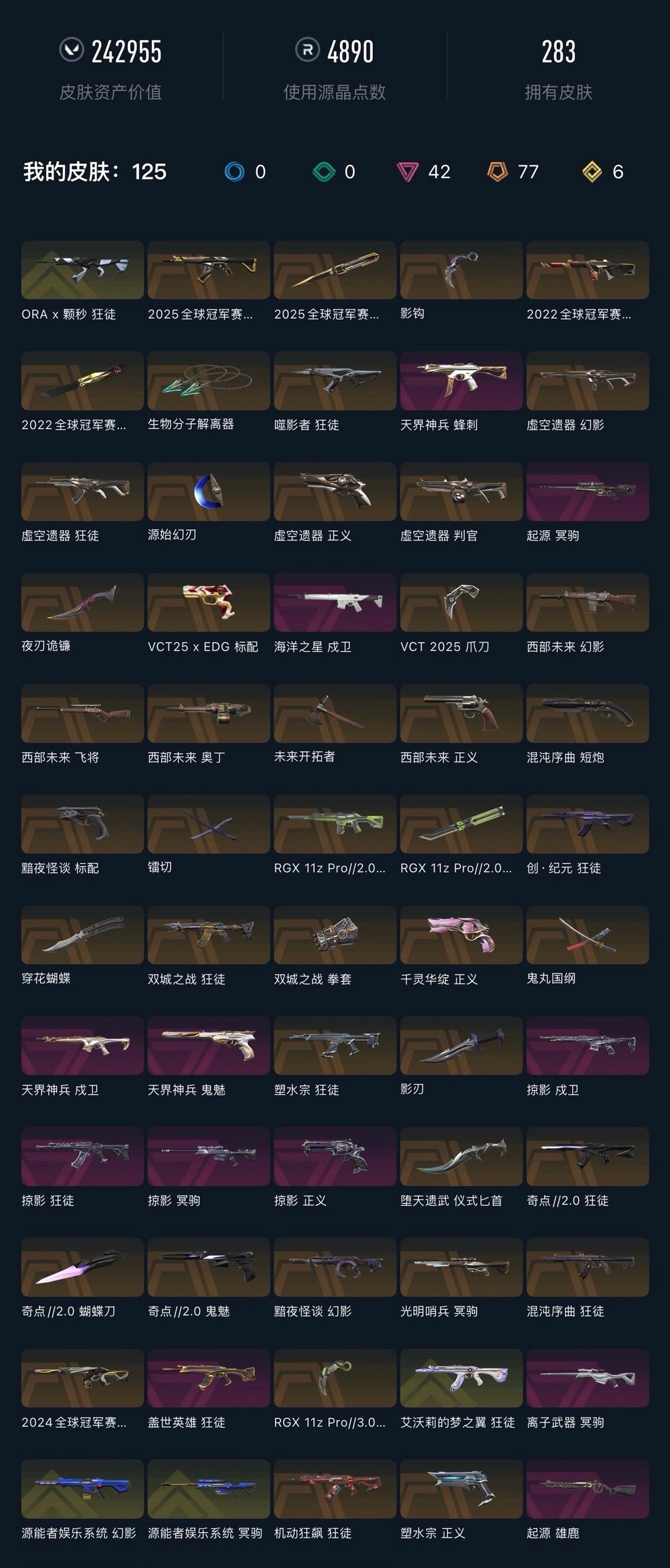 武器皮肤数量:287