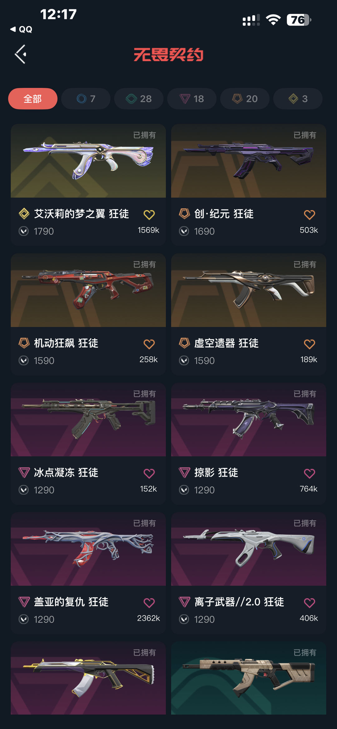 武器皮肤数量:77