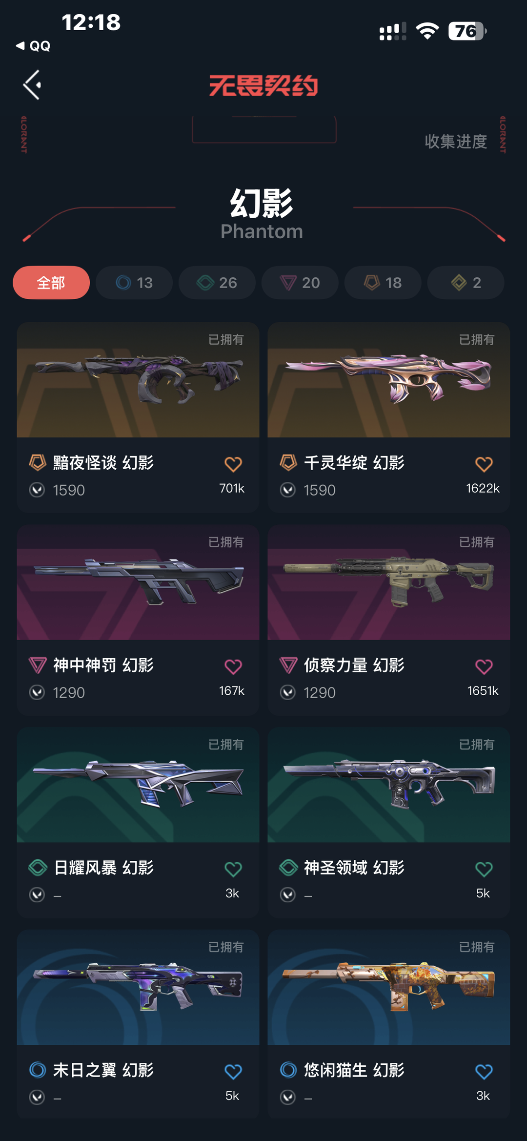 可排位4.2万库存❤️VCT爪显卡爪❤️盖亚紫金掠影离子猫猫❤️侦察幻影❤️西部正义奥丁❤️神h挂坠