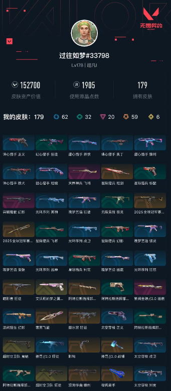 武器皮肤数量 179 英雄数量 28 卓越武器数量 20 终极武器数量 6 传奇武器数量 59
