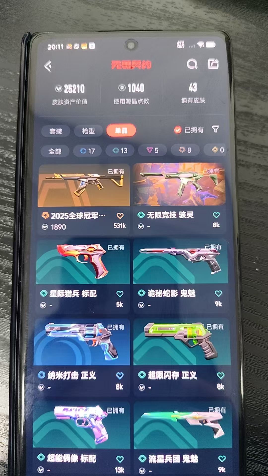 皮肤总价值25210❤未定级❤总皮肤43❤无限竞技 骇灵❤星际猎兵 标配❤诡秘蛇影 鬼魅❤纳米打击 正义❤超限闪存 正义❤超能偶像 标配❤流星兵团 鬼魅