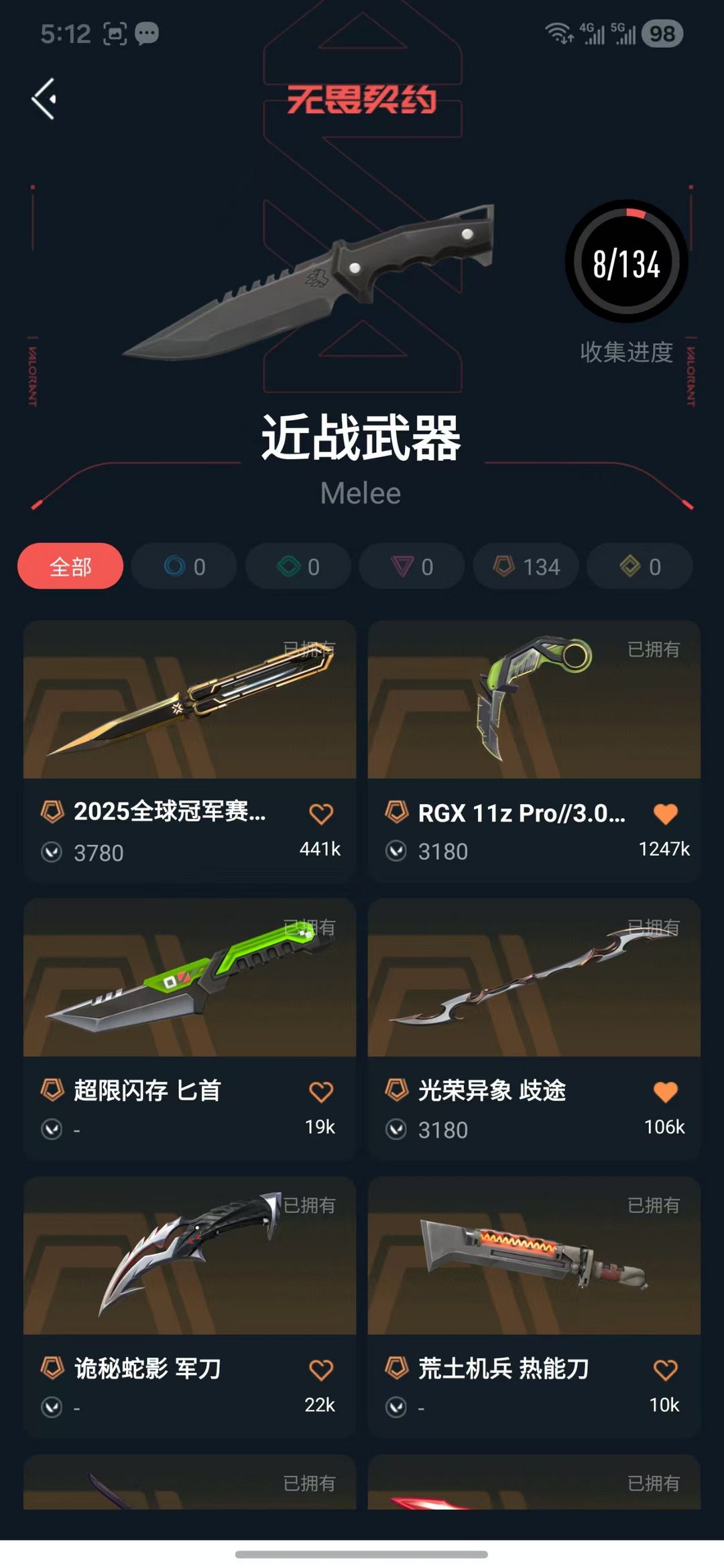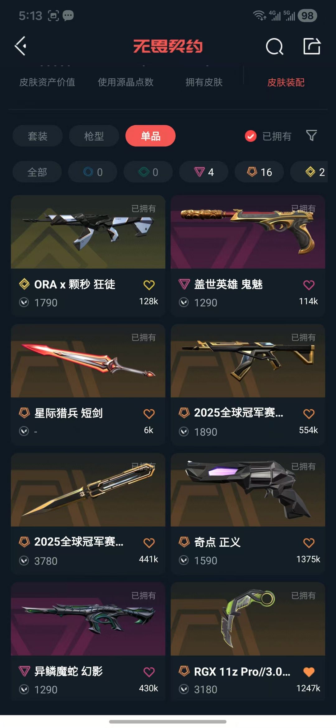 25冠军套装,光荣异象套装,颗秒ak,显卡ak,紫金ak,莲花m4,奇点正义,镭切太刀,显卡爪刀,天界戍卫等,炫彩大部分都已经解锁