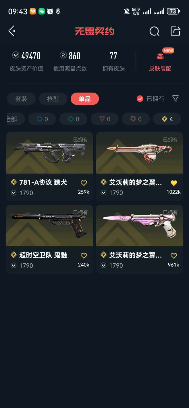 皮肤价值47470,有狮子、离子、光荣、混沌狂徒,暗夜、侦查、电音、流脓幻影。具体见图