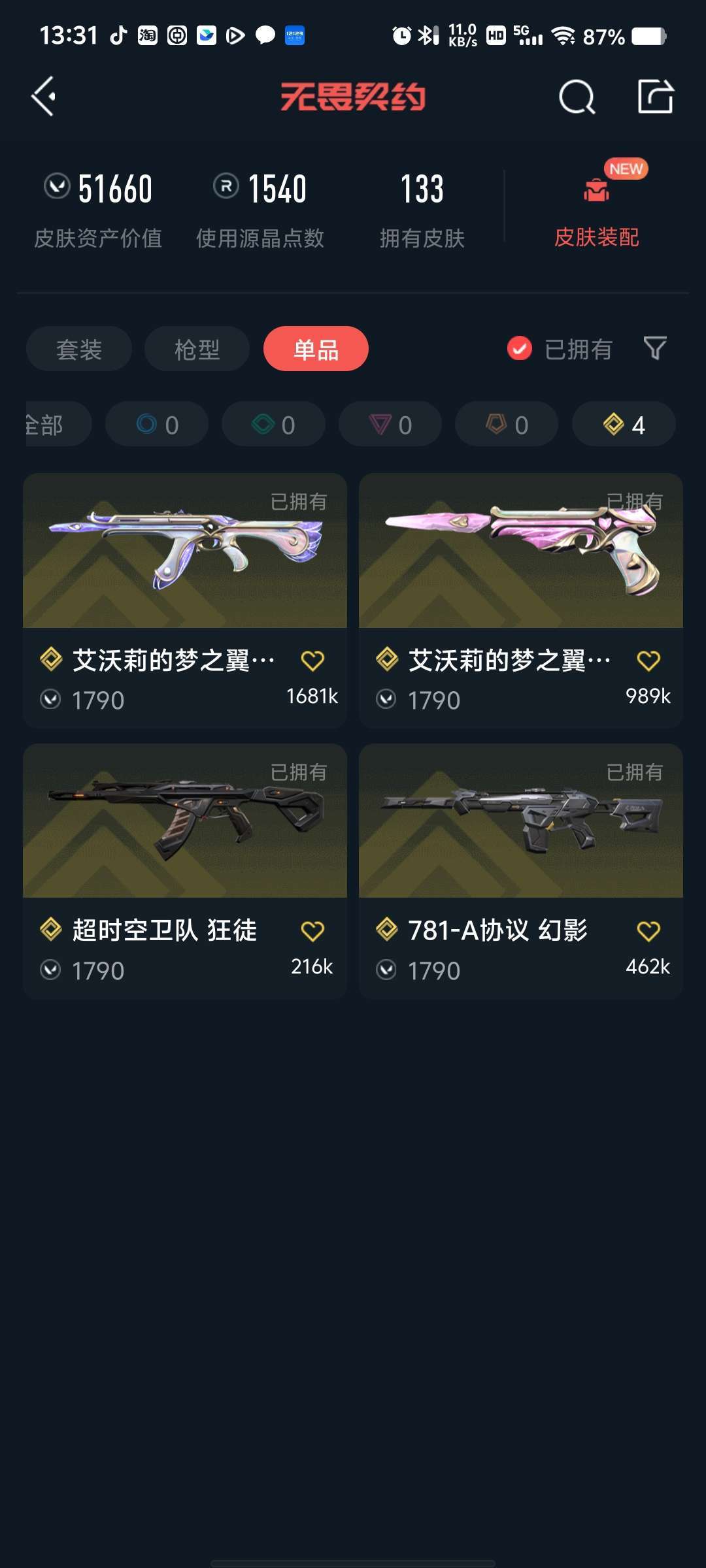 武器皮肤数量:133