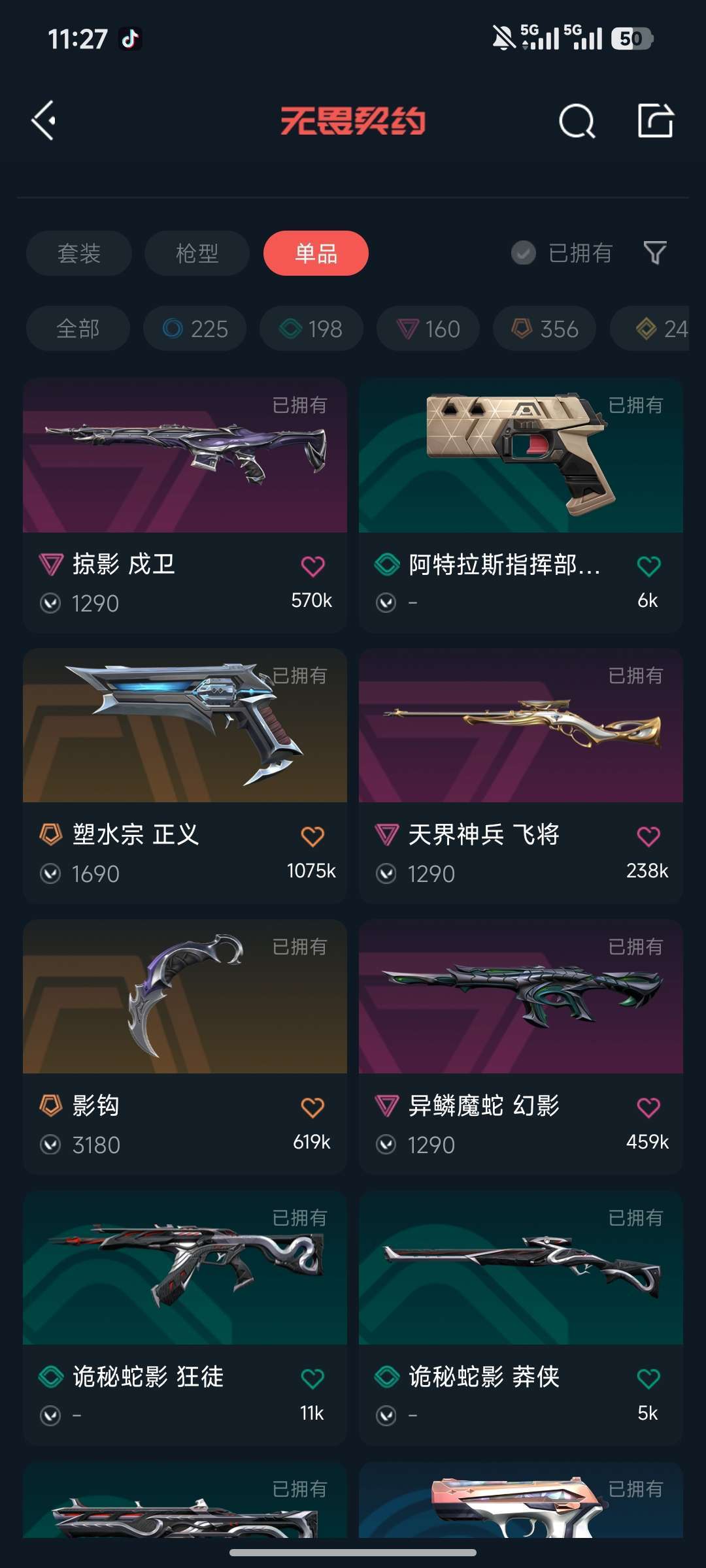 掠夺爪刀,戊卫, 盖亚ak,显卡ak,素水宗正义,天界神兵鸟狙,鬼魅,奇点蝴蝶刀,蛇年m4