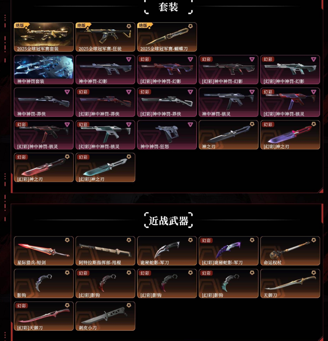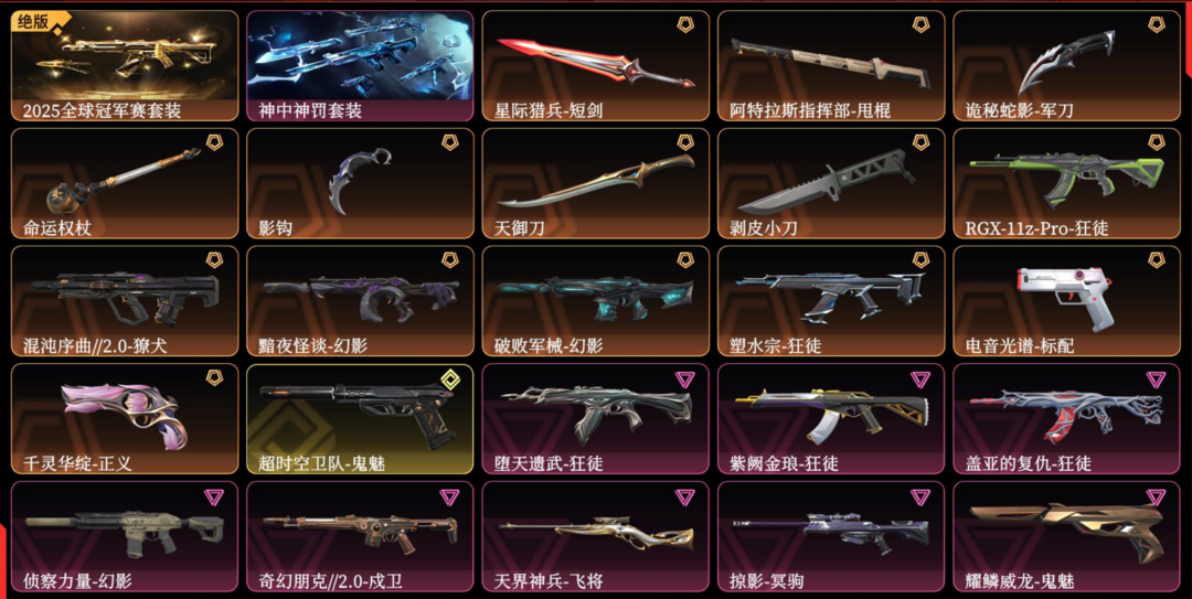 25冠军套神罚套⭐剥皮天御刀影钩⭐塑水宗显卡盖亚紫阙弃王⭐暗夜破败侦查幻影⭐莲花正义超时空耀鳞鬼魅