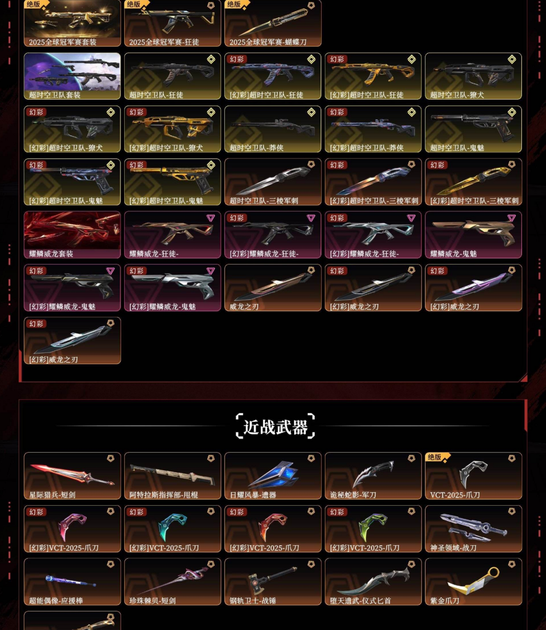 大库存【超时空卫队套装】22冠军25冠军套⭐紫金威龙VCT天玄刀三棱⭐14把热门主战⭐3把狙4正义