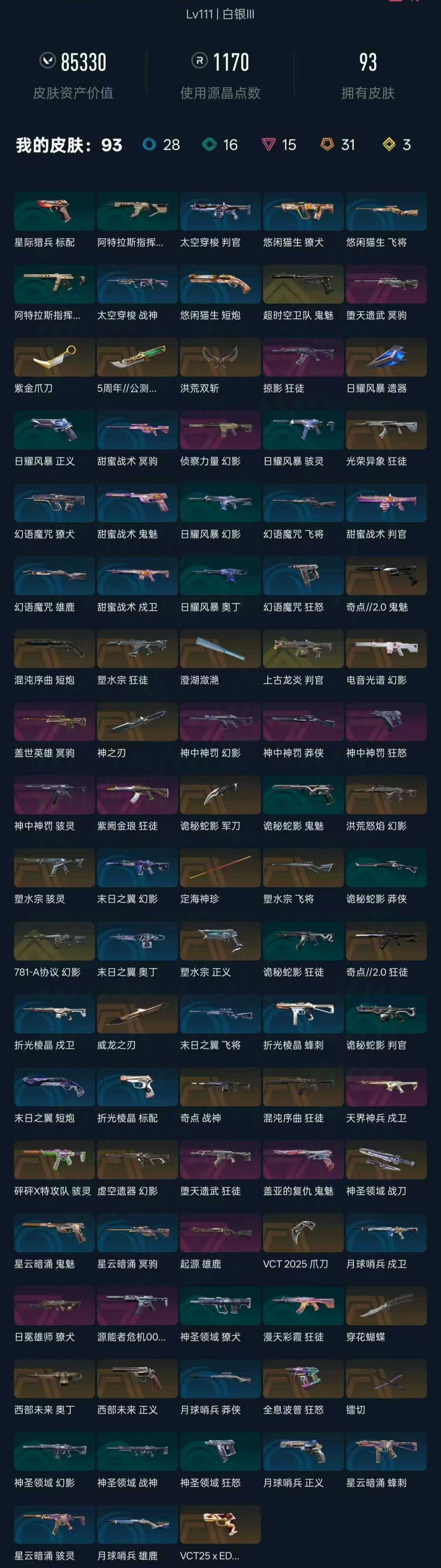 武器皮肤数量:94