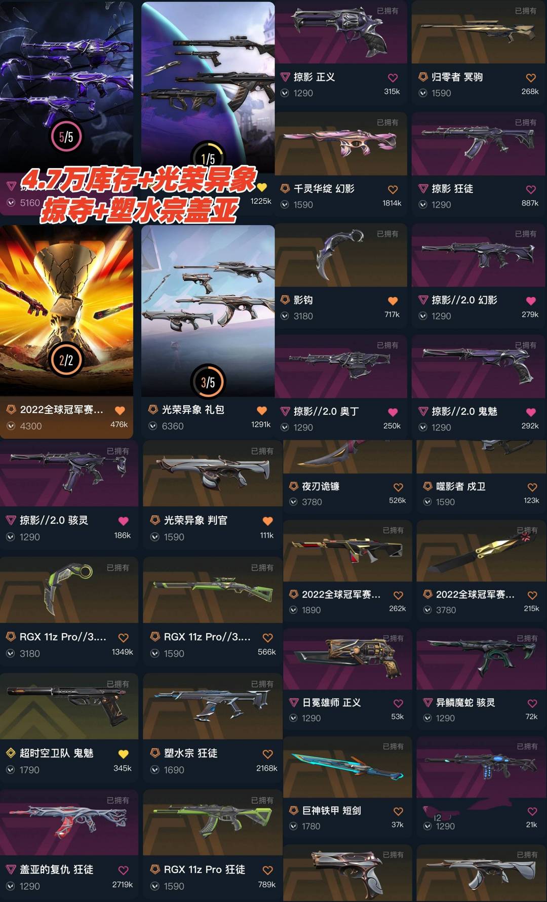 禁排✅4.7万⭐光荣异象掠夺塑水宗盖亚显卡⭐影钩显卡爪蝴蝶刀⭐掠影22冠军千灵华绽⭐噬影者异鳞魔蛇