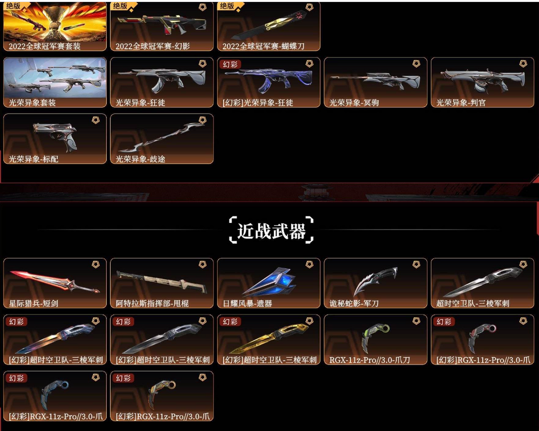 ⭐超时空三棱+显卡爪⭐光荣异象套+22冠军套⭐超时空多弥尔混沌洪荒AK⭐侦察离子神罚⭐VCT标配混沌