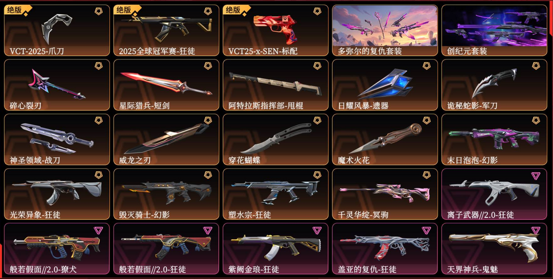 ✅可排位✨多弥尔创纪元套✨25冠军塑水宗光荣紫金盖亚离子狂徒✨电工钳VCT爪刀穿花蝴蝶威龙✨泡泡幻影