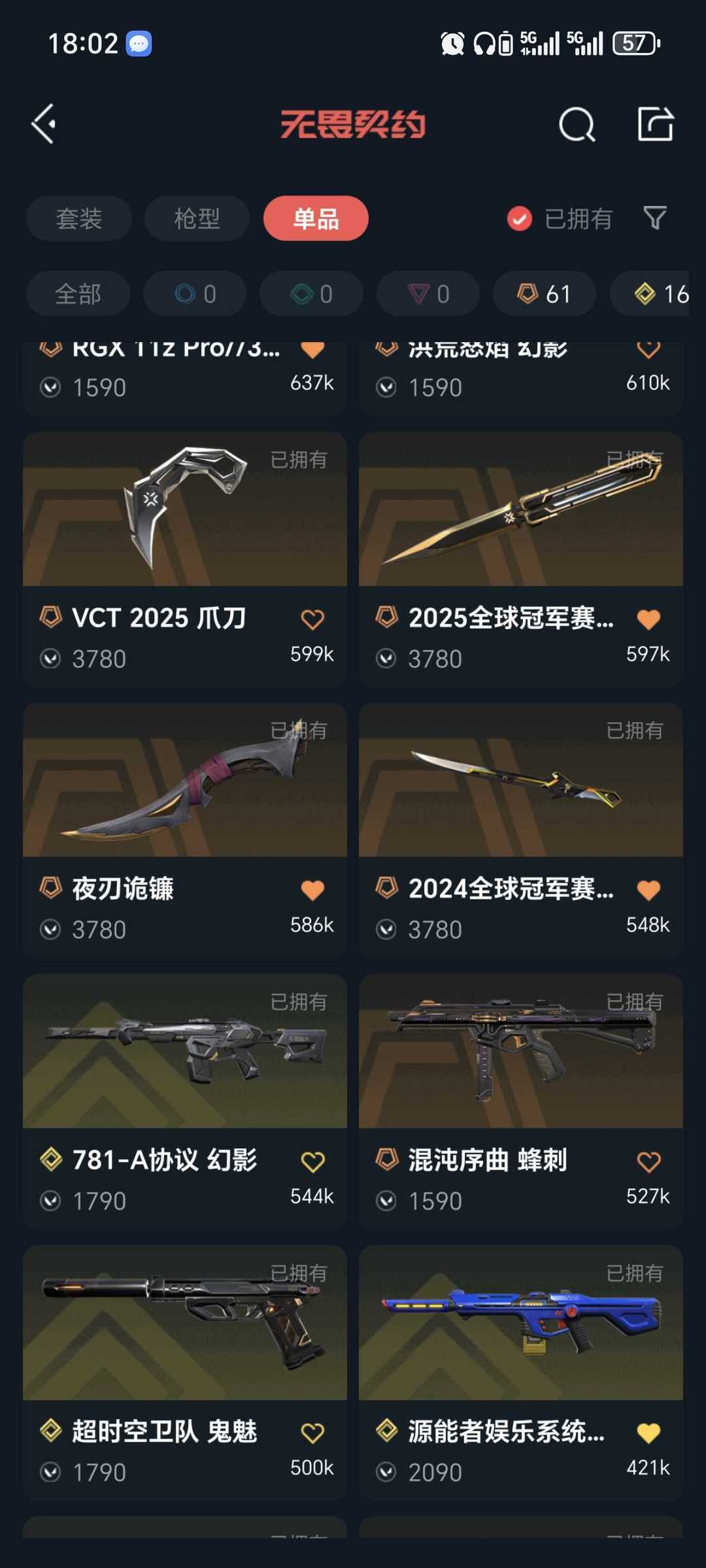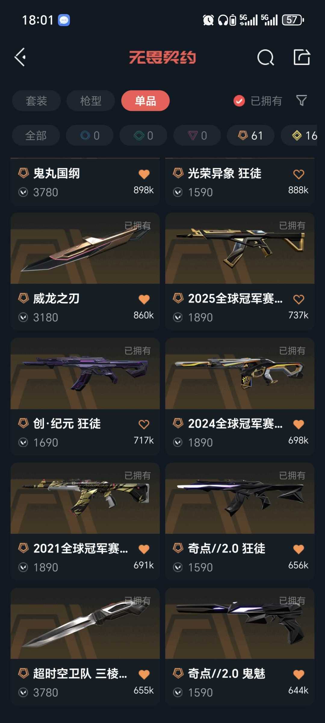 传奇数量:61