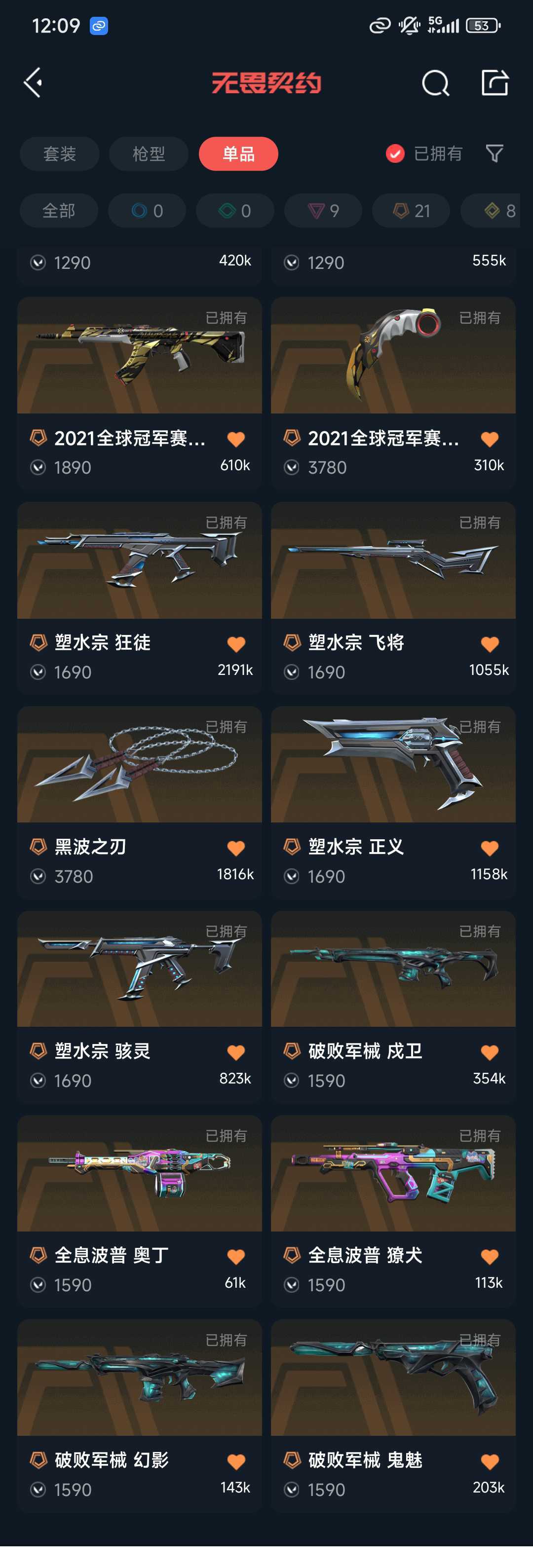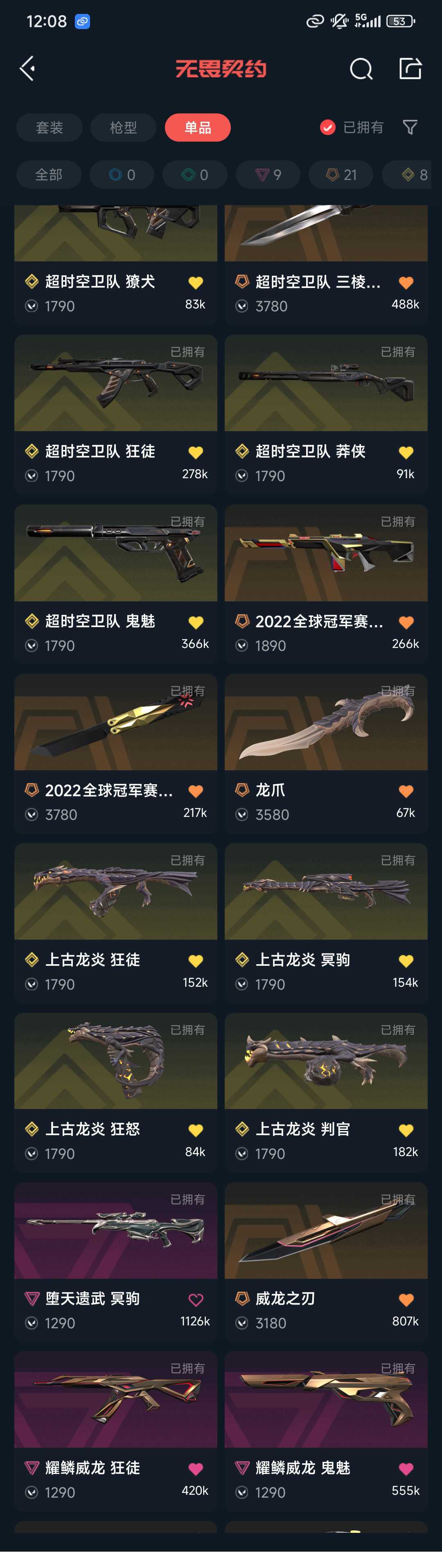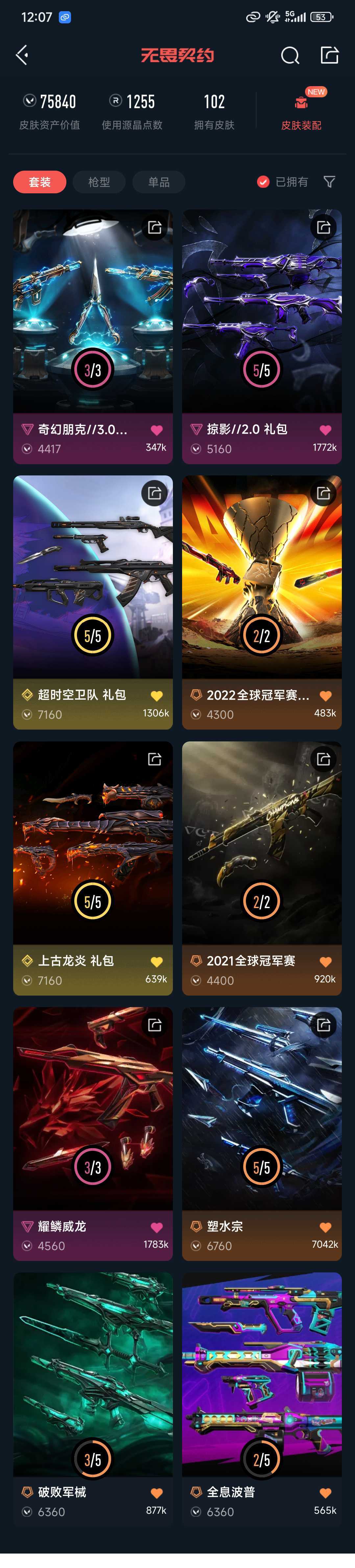 禁排位 冻结重上✨❤️21冠军套22冠军套超时空套塑水套掠影2套奇幻朋克3套龙炎套威龙套