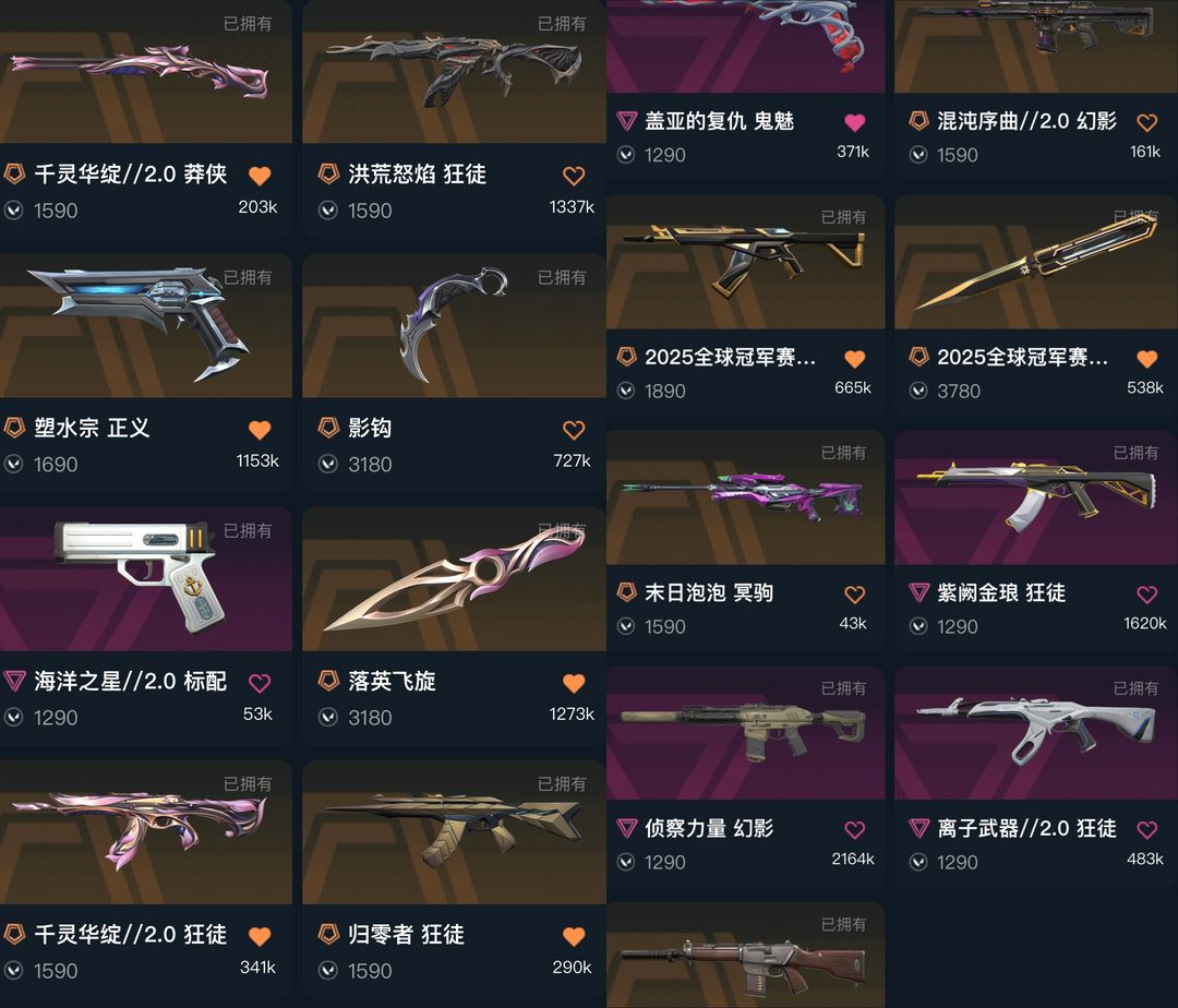 禁排✅精品库存⭐25冠军套洪荒怒焰千灵华绽2归零者离子2紫金⭐蝴蝶刀落英飞旋影钩⭐侦察力量西部未来