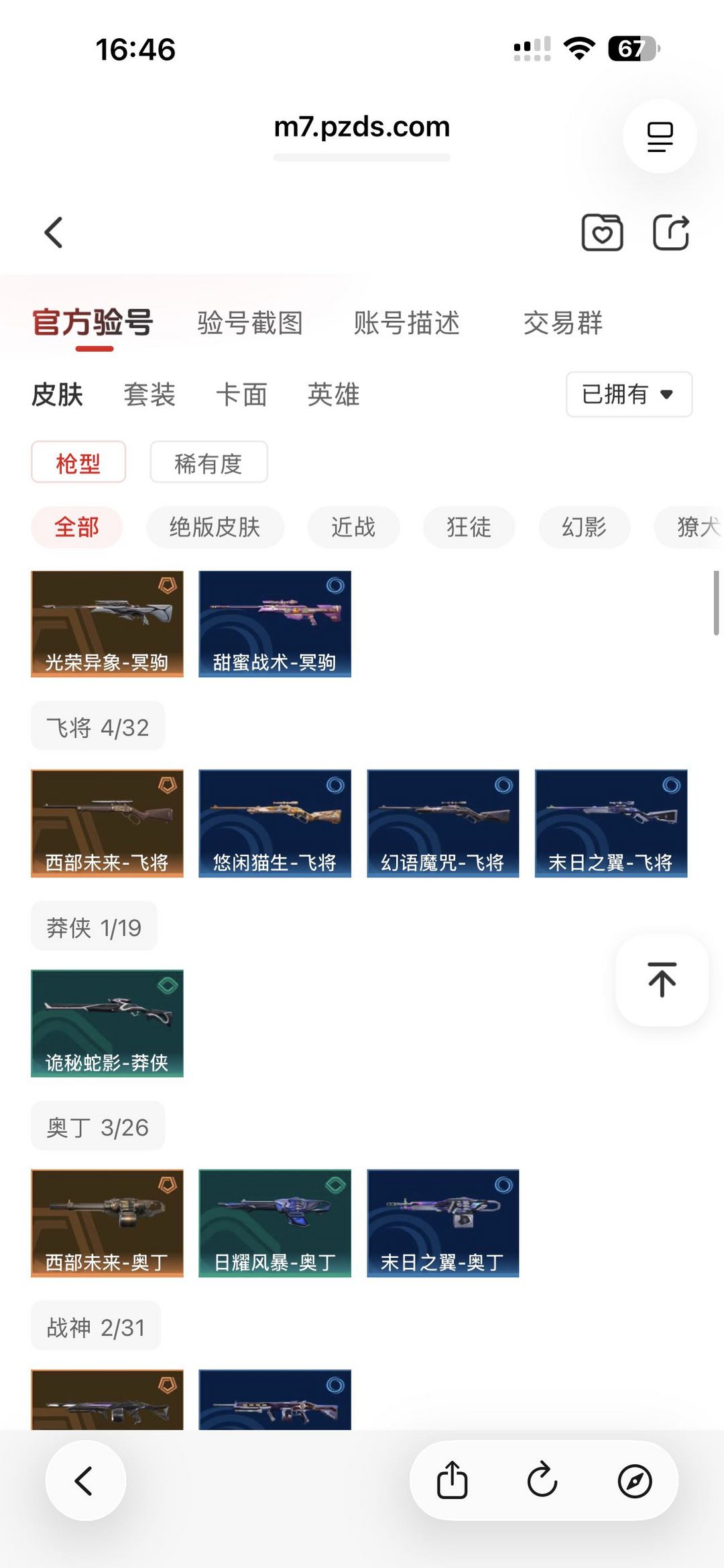 2022冠军套装,皮肤总价值31100,总皮肤49,刀皮3枪皮46(终极3传奇8卓越4)