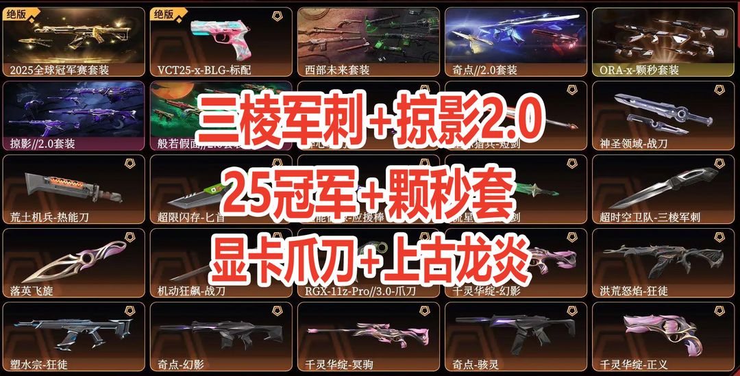 可排位✅顶级10W库存✅超时空三棱刀⭐25冠军套⭐显卡爪刀⭐上古龙炎套⭐ORA颗秒套⭐掠影2.0套⭐