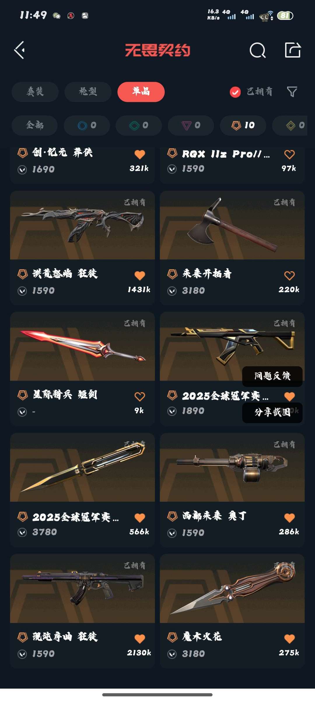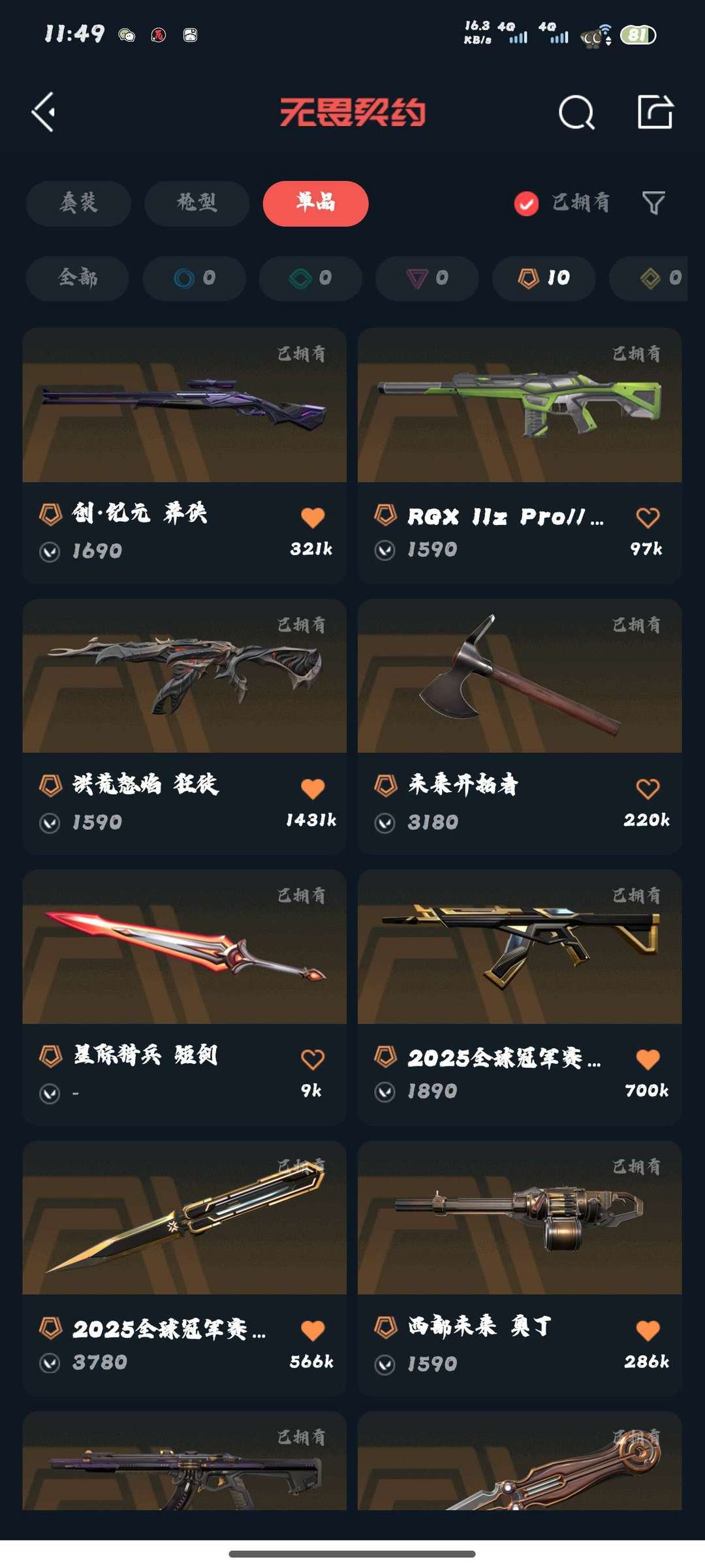 上古龙炎大狙,781猎犬,超时空AK,混沌AK,创纪元莽侠,显卡幻影,洪荒怒焰AK,2025冠军套等
