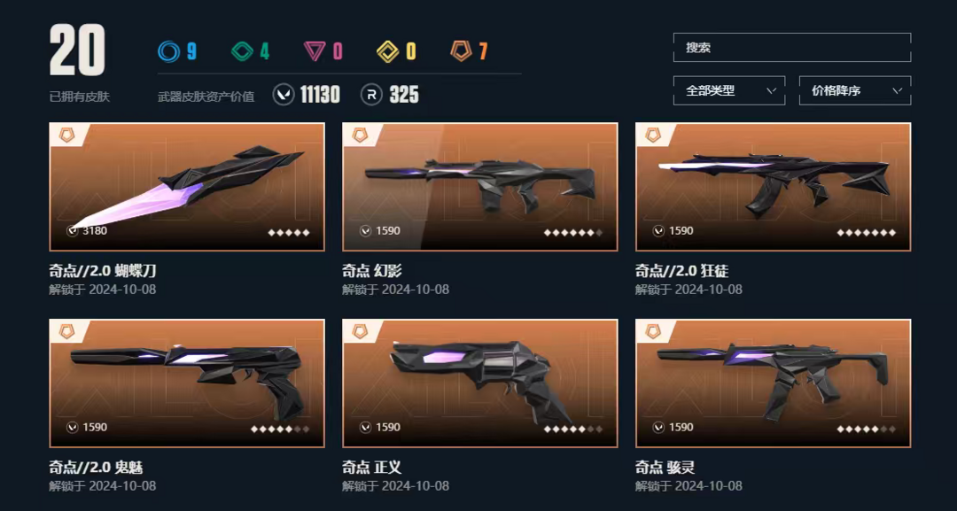 武器皮肤数量:20