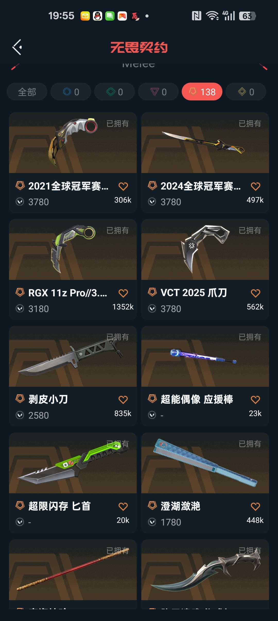 全英雄 刀皮28个21冠军套 24冠军套 双城之战套装 vct爪刀 猴子套