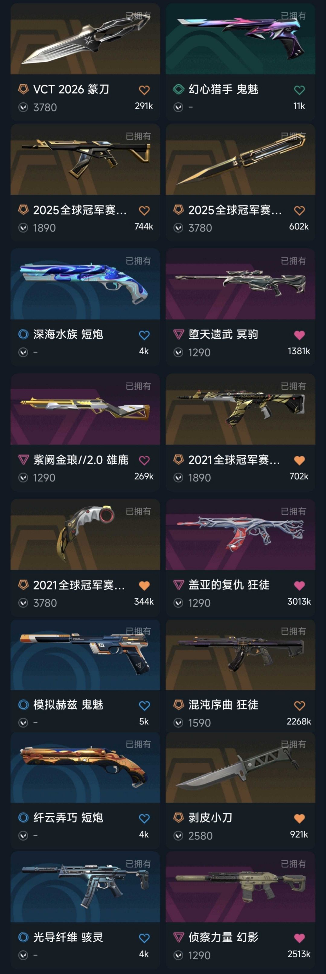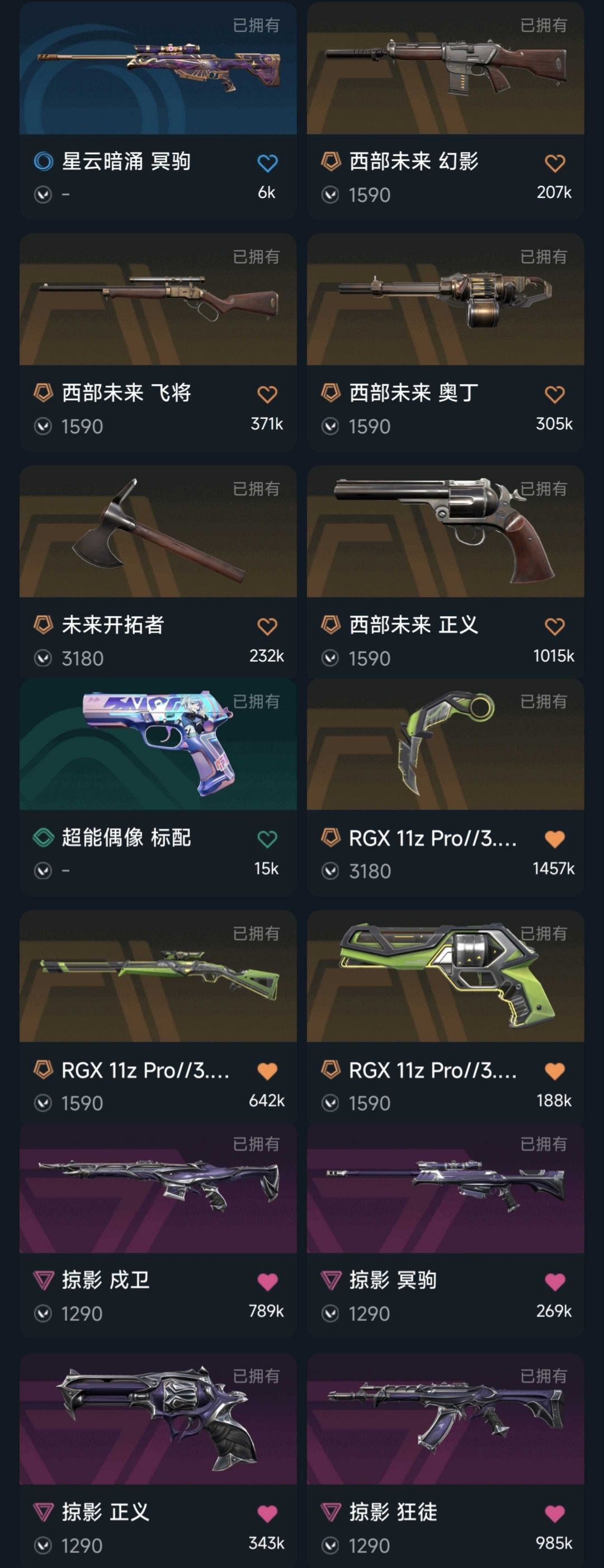 真10万库存21/25冠军套♉掠影套RGX3.0套西部未来套♏篆刀剥皮小刀混沌盖亚狂徒侦察幻影