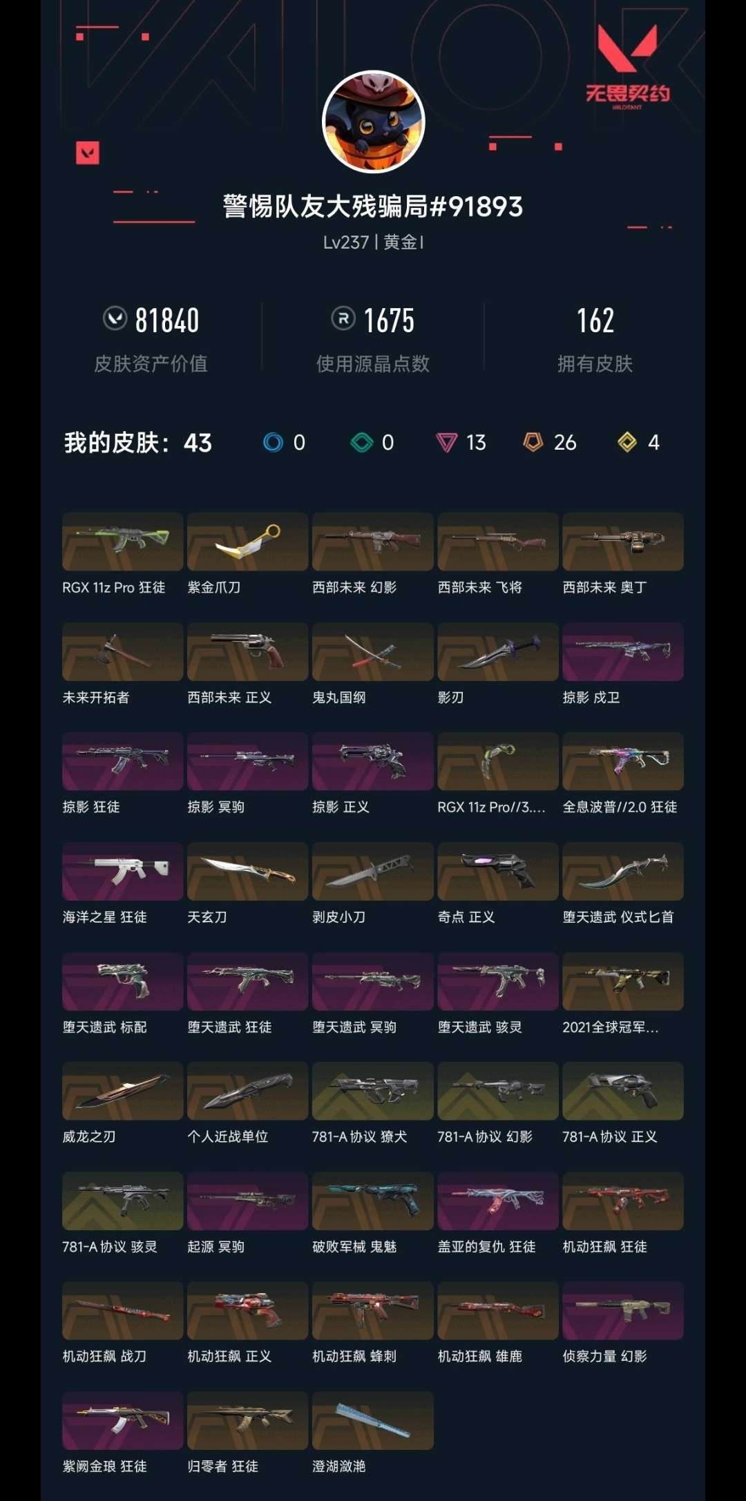 常用武器均有皮肤,12把特效刀10把特效ak3把特效大狙,剥皮太刀爪刀,反手刀等主流刀形都有 具体皮肤详见下面 不能炸鱼!!!不能开挂!!!不能随便使用R点!!! 理解,谢谢最后祝您游戏愉快。