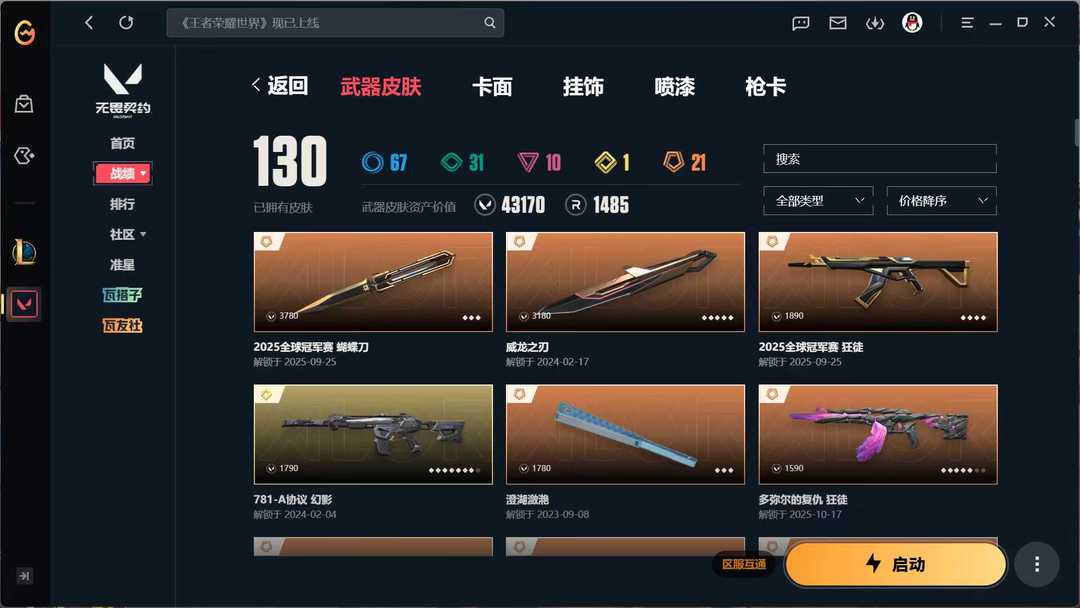 【可排位】2025 冠军蝴蝶刀 + 威龙之刃|无畏契约 130 皮 4.3W 资产精品号