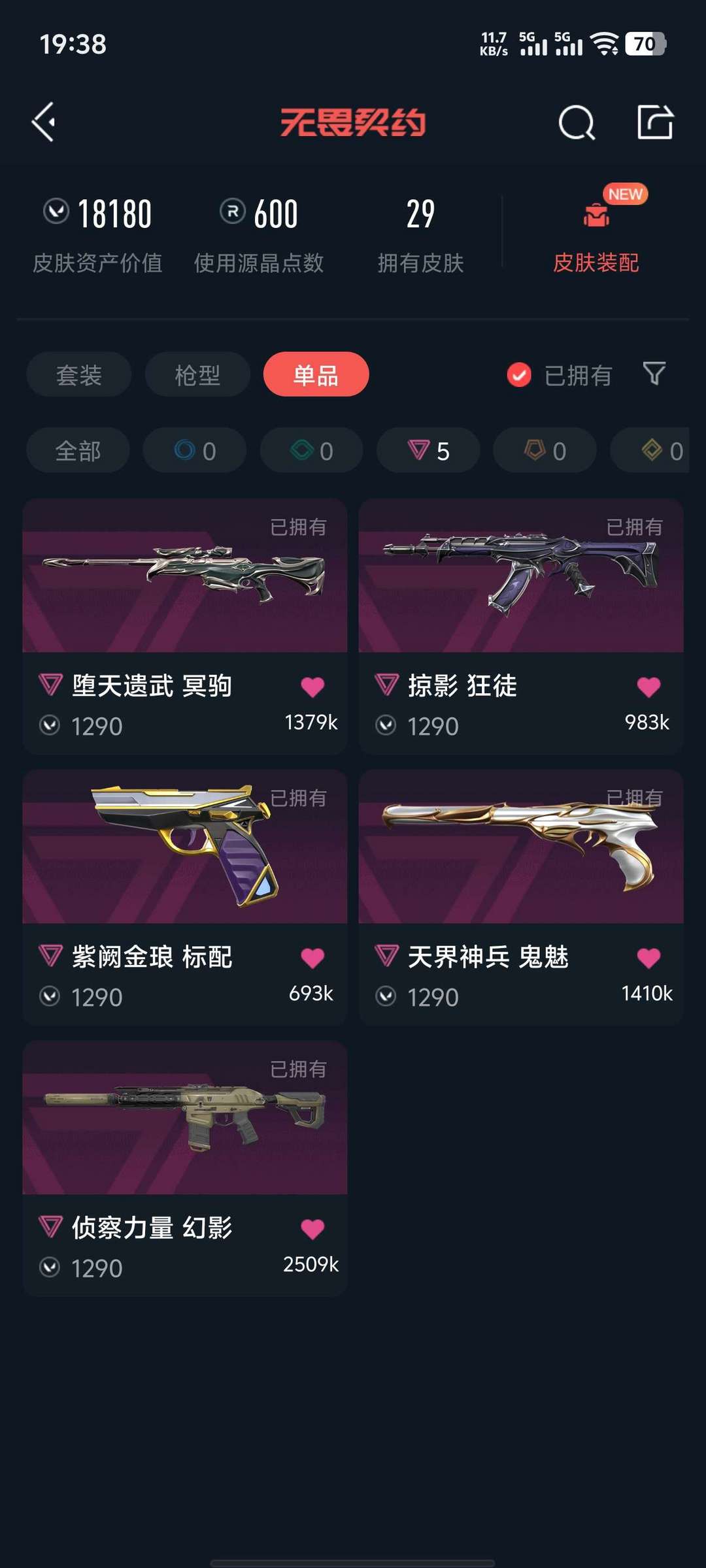 黄三,可排,ak有显卡,掠夺,混沌,侦查m4,奇点正义,弃王狙,紫金标配,三棱刺,掠夺爪,天界鬼魅