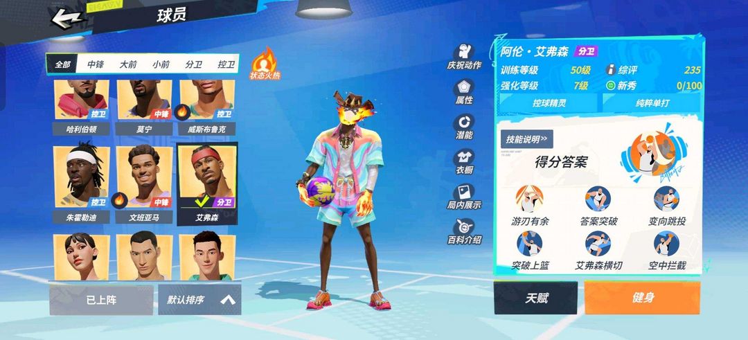 7杜兰特7格里芬7艾佛森7文班7罗德曼7韦德7克詹7大本7韩旭1浓眉1约1马龙1司机1小卡卡1哈利1獭兔1巴特勒天赋全满