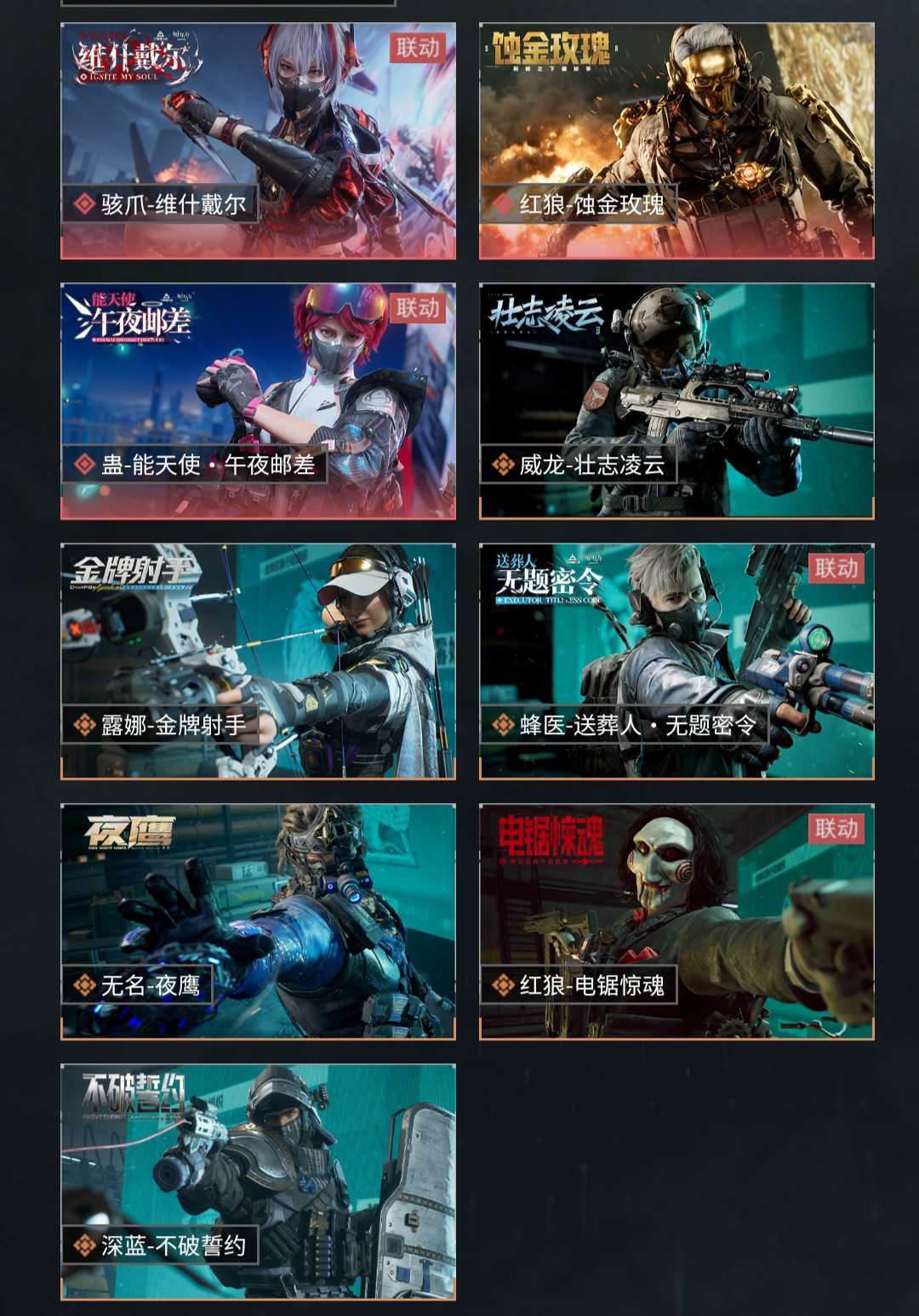 红皮(蚀金玫瑰 维什戴尔 能天使)金皮 (威龙 红狼 无名 蜂医 盾 露娜) 千万现金