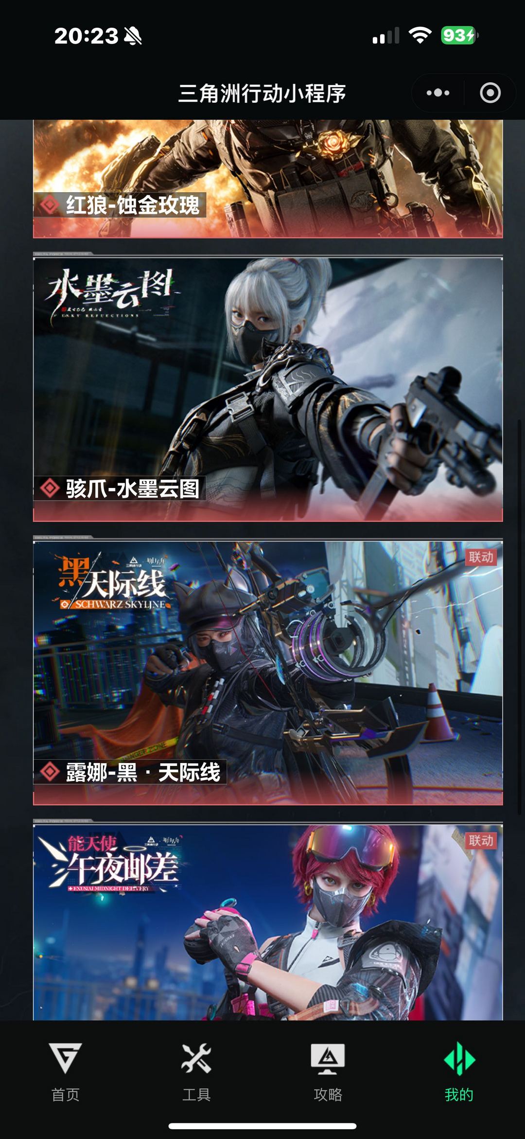 红狼-蚀金玫瑰 骇爪-水墨云图 露娜-黑·天际线 蛊-能天使·午夜邮差 骇爪-维什戴尔 威龙-凌霄戍卫 威龙-壮志凌云 无名-夜鹰 蜂医-送葬人·无题密令 红狼-电锯惊魂 深蓝-不破誓约 露娜-金牌射手 怜悯 影锋 北极星 信条 处刑者 黑鹰