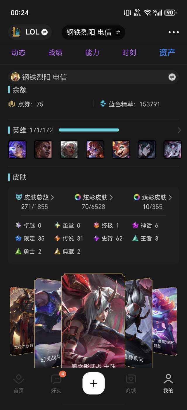 271皮肤,全英雄,女枪有终极皮肤,精粹勿动禁止利用账号进行开挂、使用辅助违规软件诈骗等违规操作。