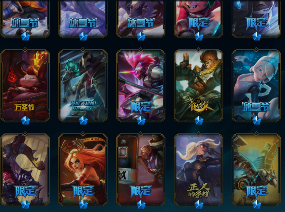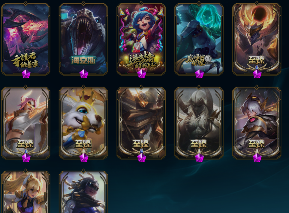 1000皮⭐至臻剑姬剑魔刀妹盖伦⭐龙瞎⭐海克斯鳄鱼⭐魔女卡蜜尔⭐海克斯皇子⭐奥德赛亚索⭐斩星魔剑⭐冠军之隐⭐穿星赵信⭐霸天剑魔⭐ 神拳⭐制胜金靴⭐奥德赛亚索⭐黑夜亚索⭐腥红亚索⭐西部亚索⭐防暴男枪⭐黑暗男枪⭐冰雪男枪⭐神王诺手⭐神王盖伦⭐灌篮高手⭐生化骑士⭐斩星魔剑剑圣⭐玉剑传说剑圣⭐未来锐雯⭐黎明锐雯⭐ 穿星赵信⭐FNC皇子⭐海克斯皇子⭐冠军之隐⭐冲击之刃⭐未来女警⭐猴年女警⭐未来探险家⭐ 玩具鳄鱼⭐泳池鳄鱼⭐符文鳄鱼⭐地底世界⭐未来卡牌⭐御星艾西⭐源计划风林阴雷⭐奶牛⭐驯龙炮手⭐武神⭐电玩娑娜⭐电玩小法⭐泳池德莱文⭐鬼影婕拉⭐IG卡蜜尔⭐战争杰斯⭐ 霸天剑魔⭐SSW锤石⭐