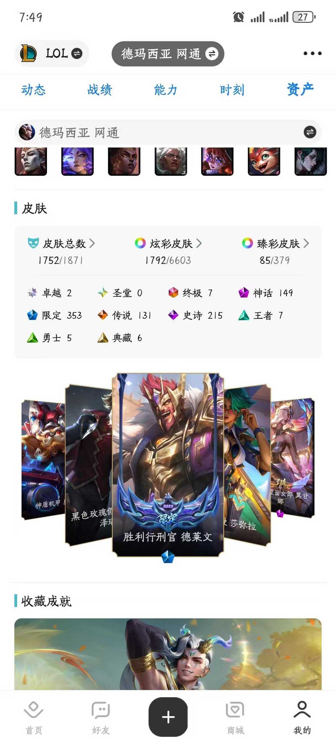 联盟五区皮肤帝❤️皮肤数1752原皮85臻❤️神话幻想亚索联❤奖池清空❤️终结特效
