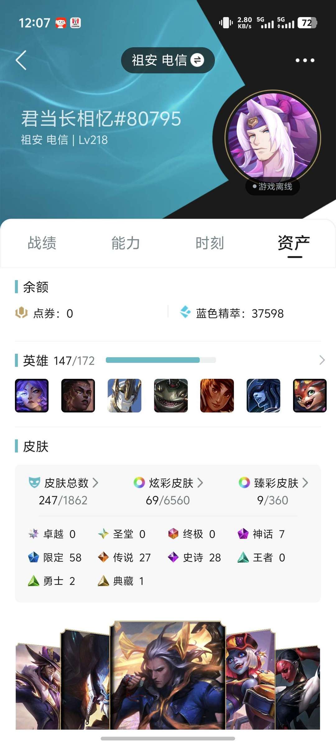 祖安电信 铂金一,黄金子龙,多传说多至臻和限定皮,快来看看吧