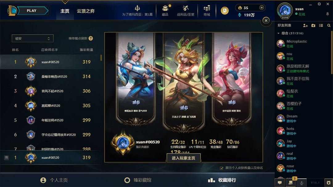 真实顶级❤️1850皮❤️329+臻彩联一排名第一❤️商城清空❤️新皮全有❤️全云顶至臻神话小小英雄