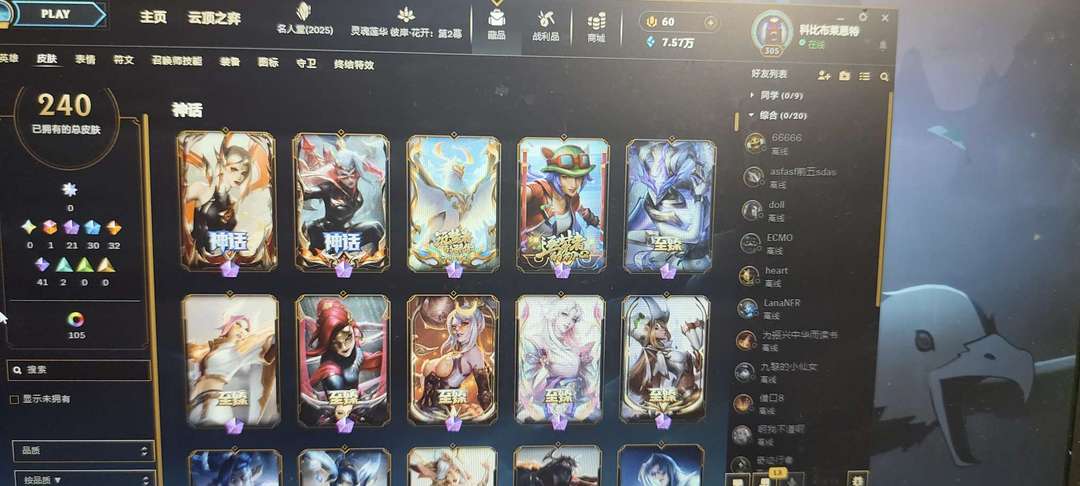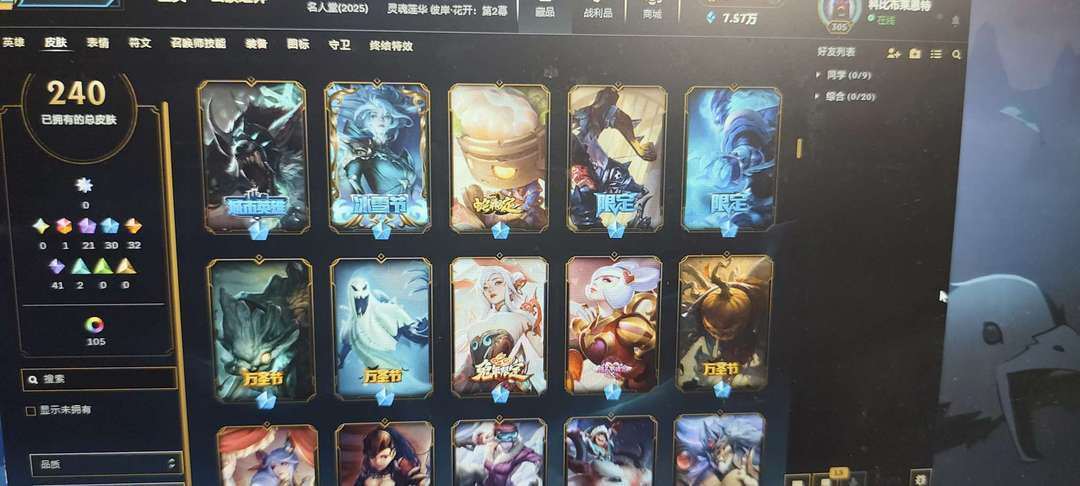 黄金单双240皮终极拉克丝兔年刀妹假面小队新洛克萨斯全套,臻彩瞎子可排位全英雄。