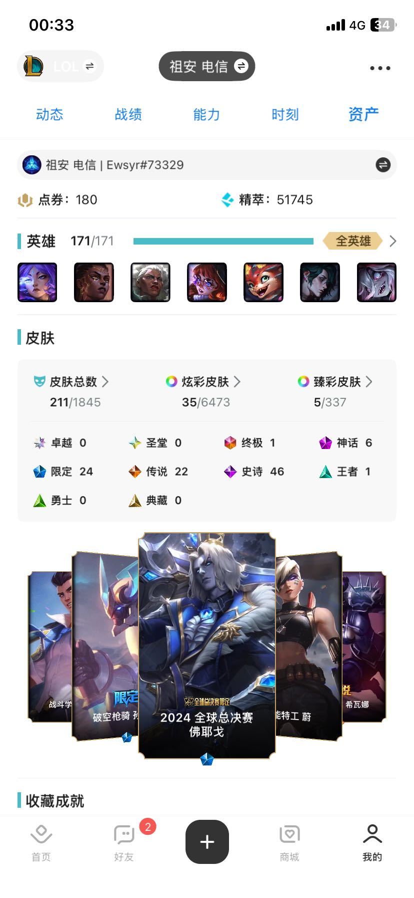 联盟一区❤️全英雄❤️皮肤211❤️热门英雄几乎都有皮肤❤️可排位