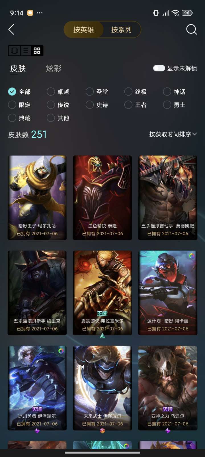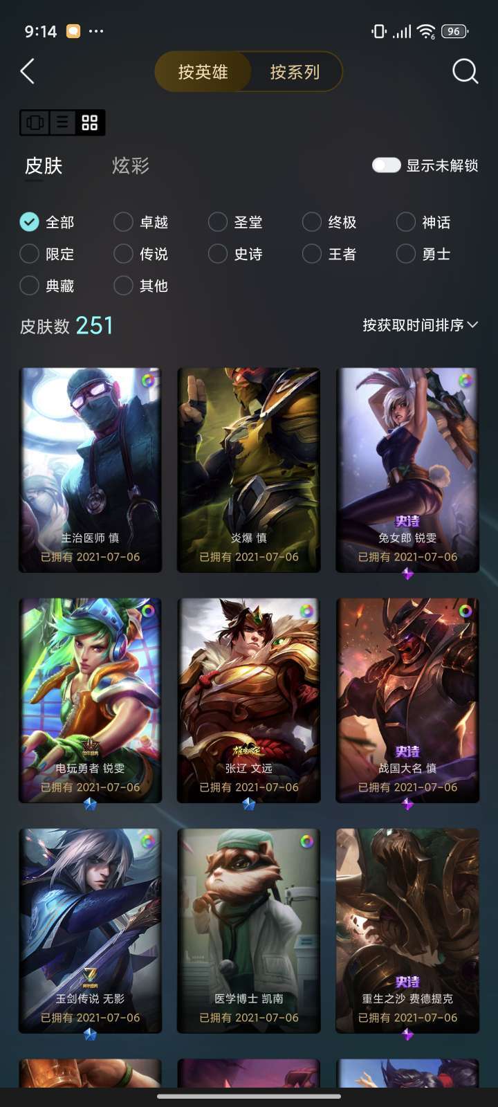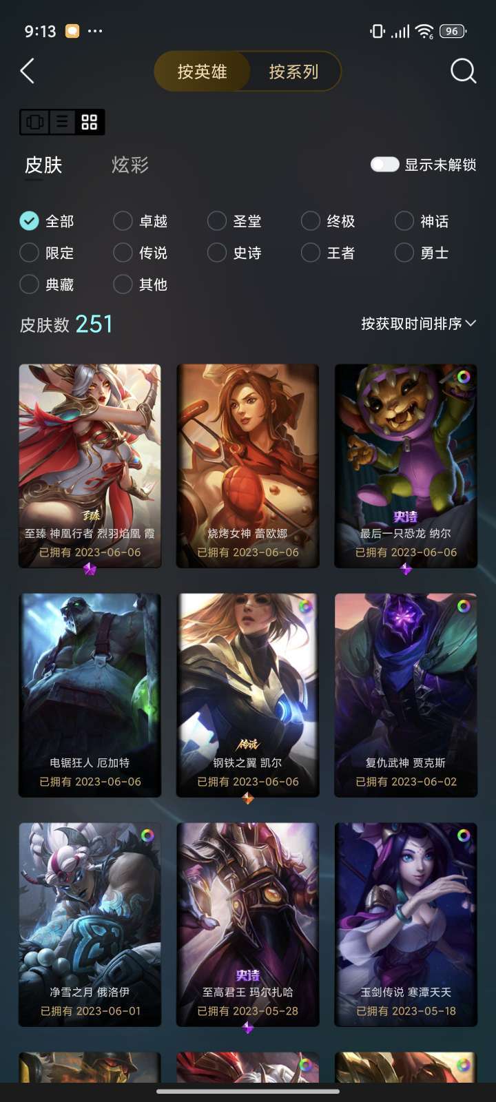 至臻亚索 至臻剑姬 至臻霞 龙年男刀 周年诺手 热门皮肤