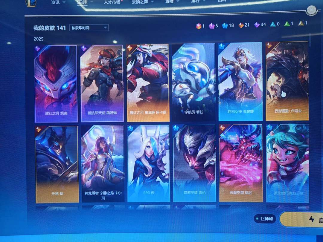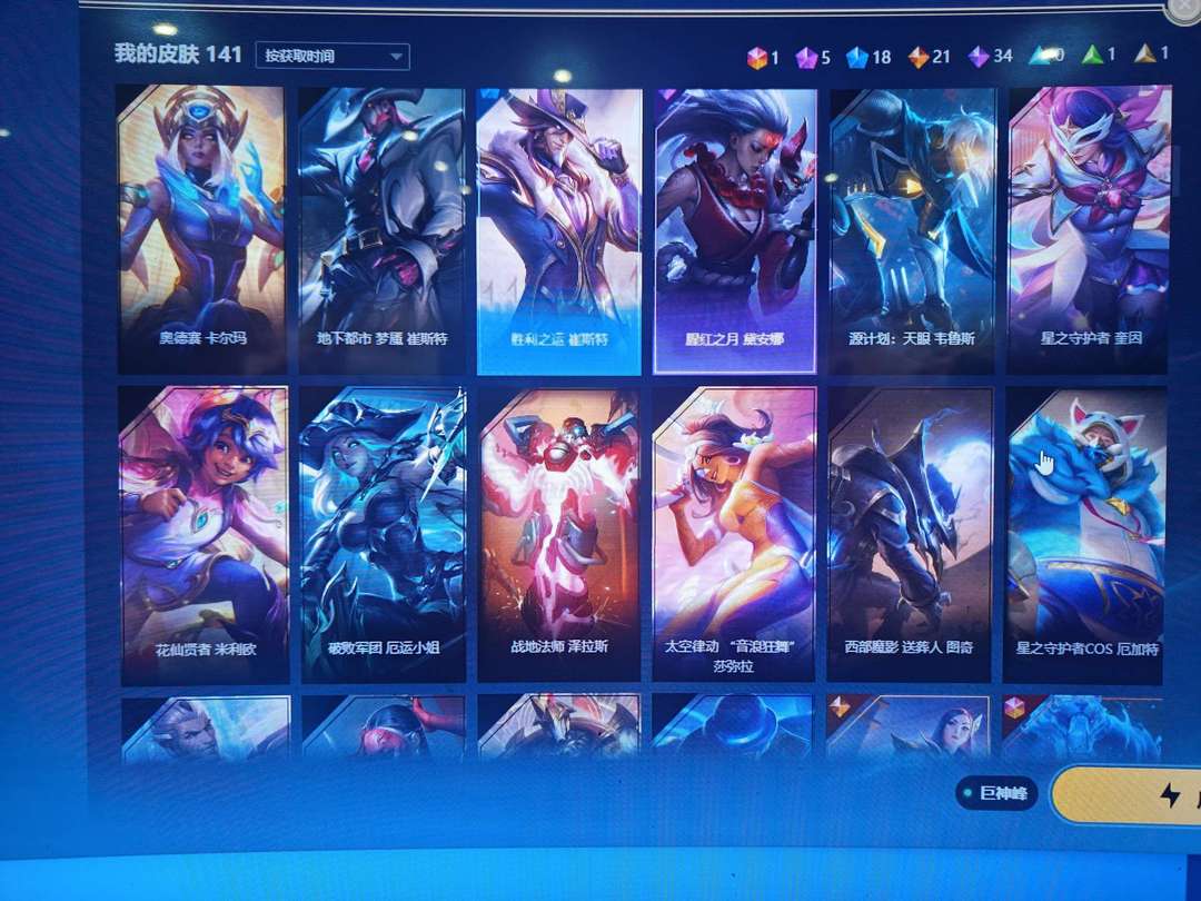 热门英雄皮肤都有,亚索黑夜使者,瞎子神龙尊者,卢锡安西部魔影,刧天煞,妖姬ig