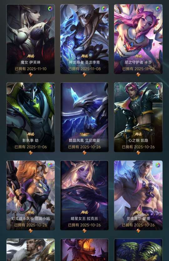 神龙瞎子亚索火男,星守卡莎幻灵女枪心之钢凯隐,灵魂腕豪蛇女,暗星拉克丝烬铁男,西部诺手卢锡安艾希卡特