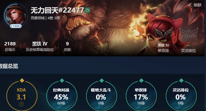 段位:166级 坚韧黑铁IV级 坚韧黑铁IV